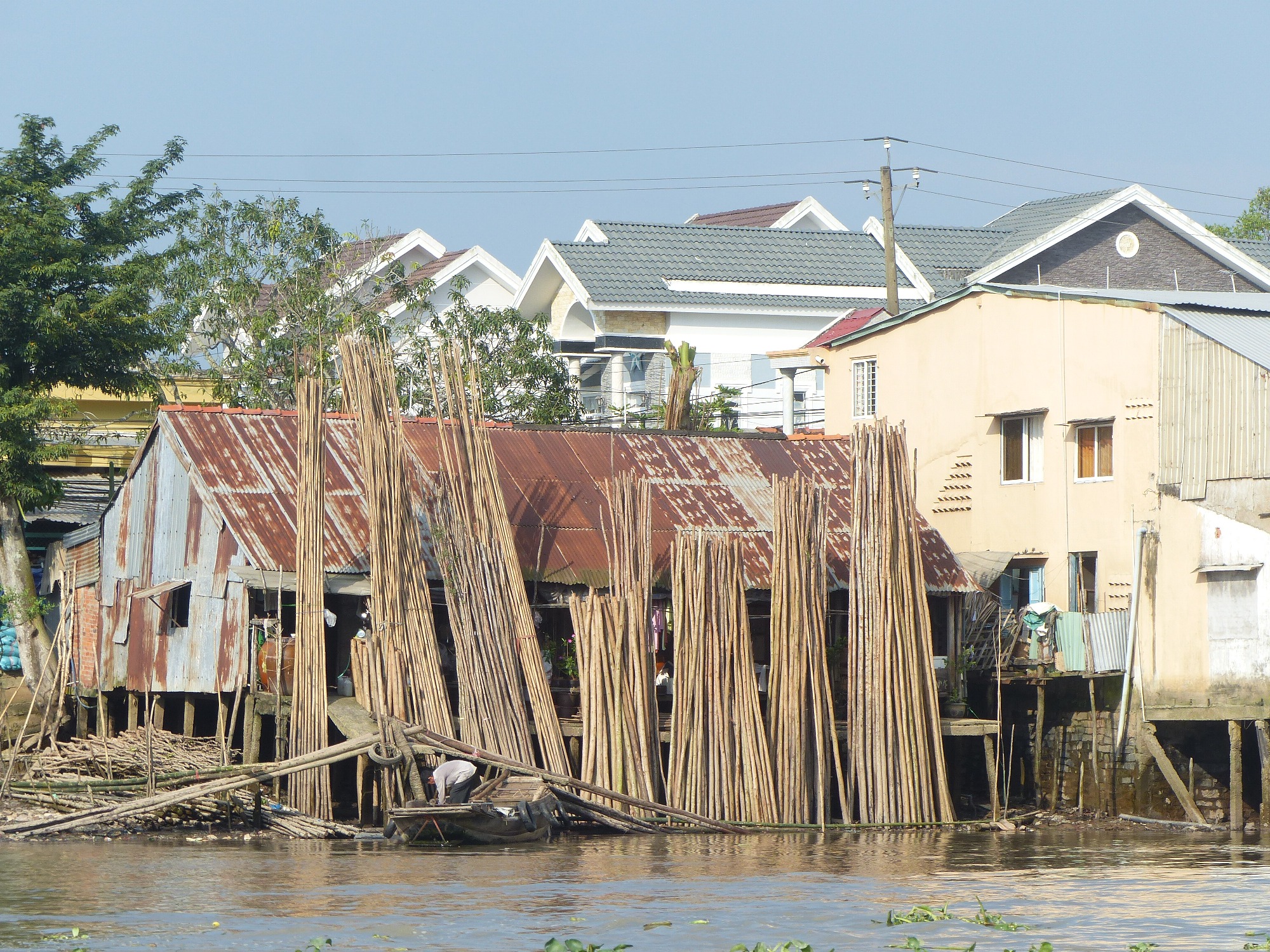 Reprise de la croisière et les rives du Mékong sont couvertes de maisons sur pilotis, enfin maison c'est un grand mot .... cabanes plutôt !