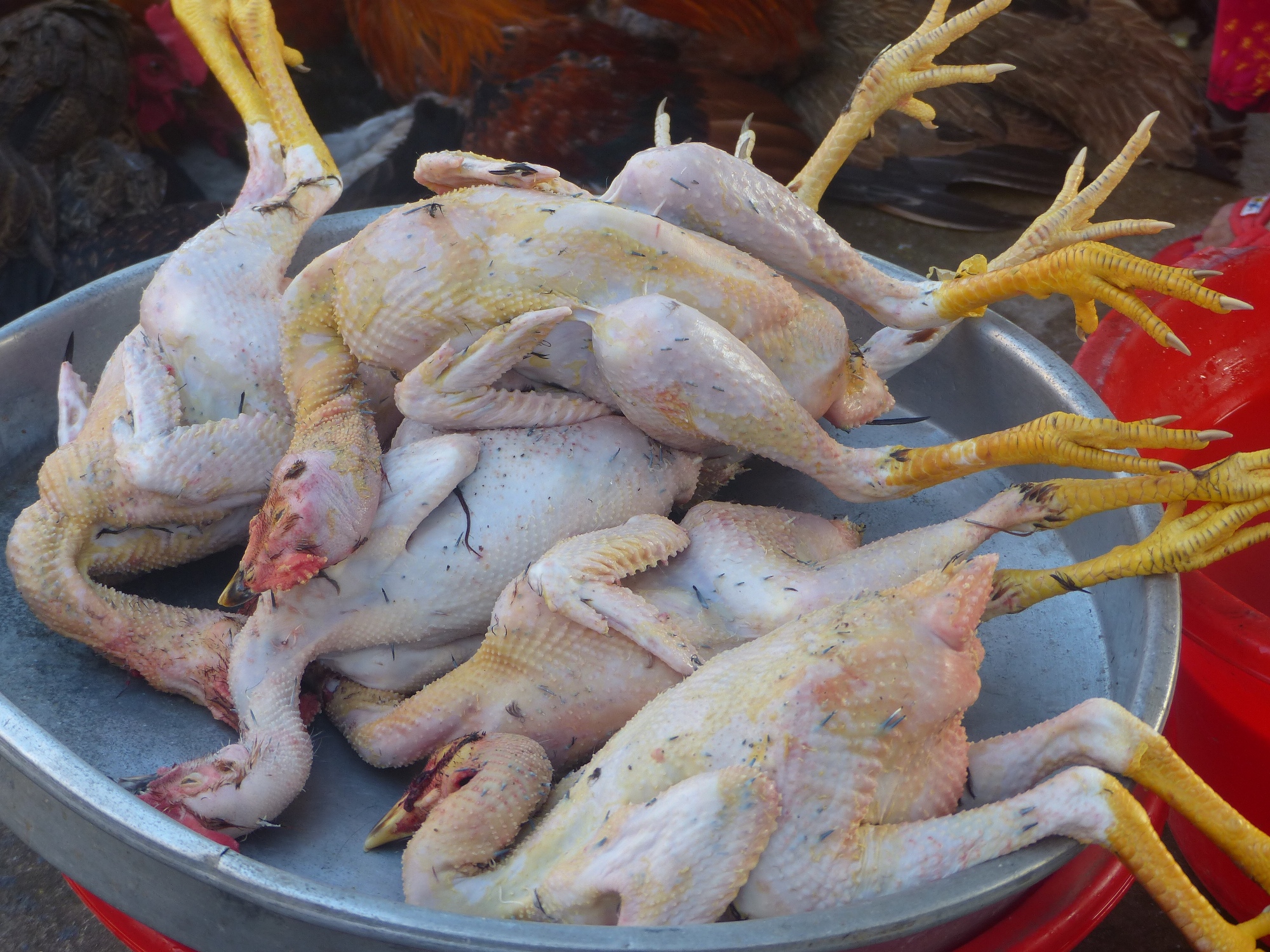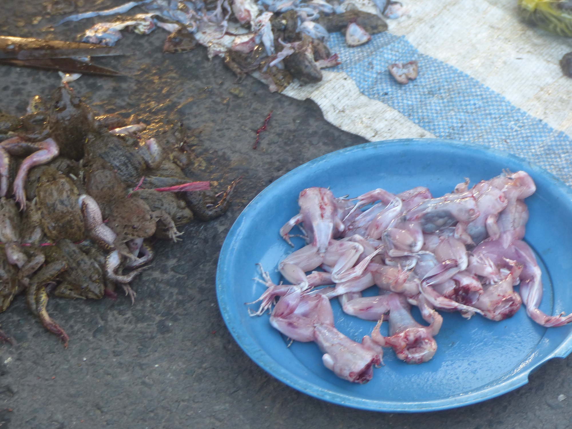Le lendemain, promenade au marché ..... je vous le livre tel quel !!!!!! Bon appétit !!!!! Bien sur il y a des légumes ..... mais pas que ...... vous allez avoir des surprises .... grenouilles vivantes et chien démembré ...... au milieu de grands sourires ....