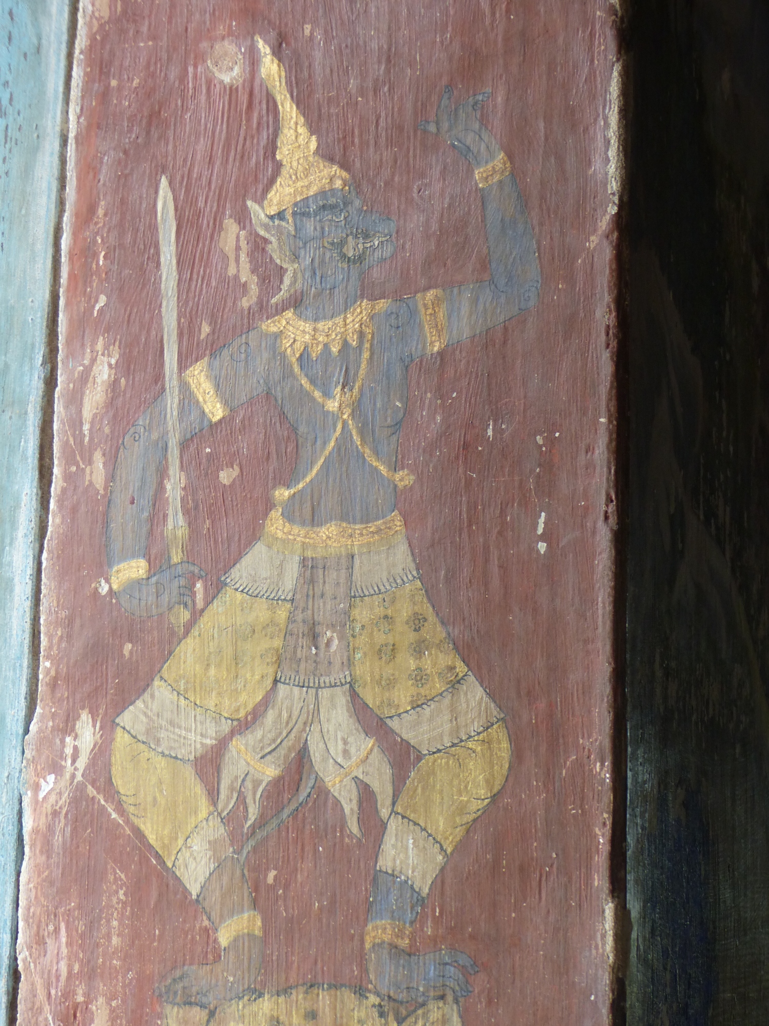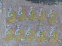 Puis nous allons visiter l’ancien Vihara de la pagode Wat Kampong Leu Cette pagode, isolée en plein milieu des rizières, dégage un charme authentique. Elle est l’un des derniers vestiges culturels de la région, où les murs arborent encore de belles fresques, mais qui demanderaient à être davantage entretenues par les autorités locales.