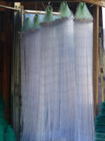 Durant la navigation, tout à coup nous voyons beaucoup de pécheurs, mais quand je dis beaucoup c'est vraiment beaucoup, des centaines de barques avec une, deux ou trois personnes à bord, voir plus parfois, des filets qu'on relève, des paniers qu'on tire, des bouteilles vides pour faire des flotteurs, bref un spectacle fabuleux ....