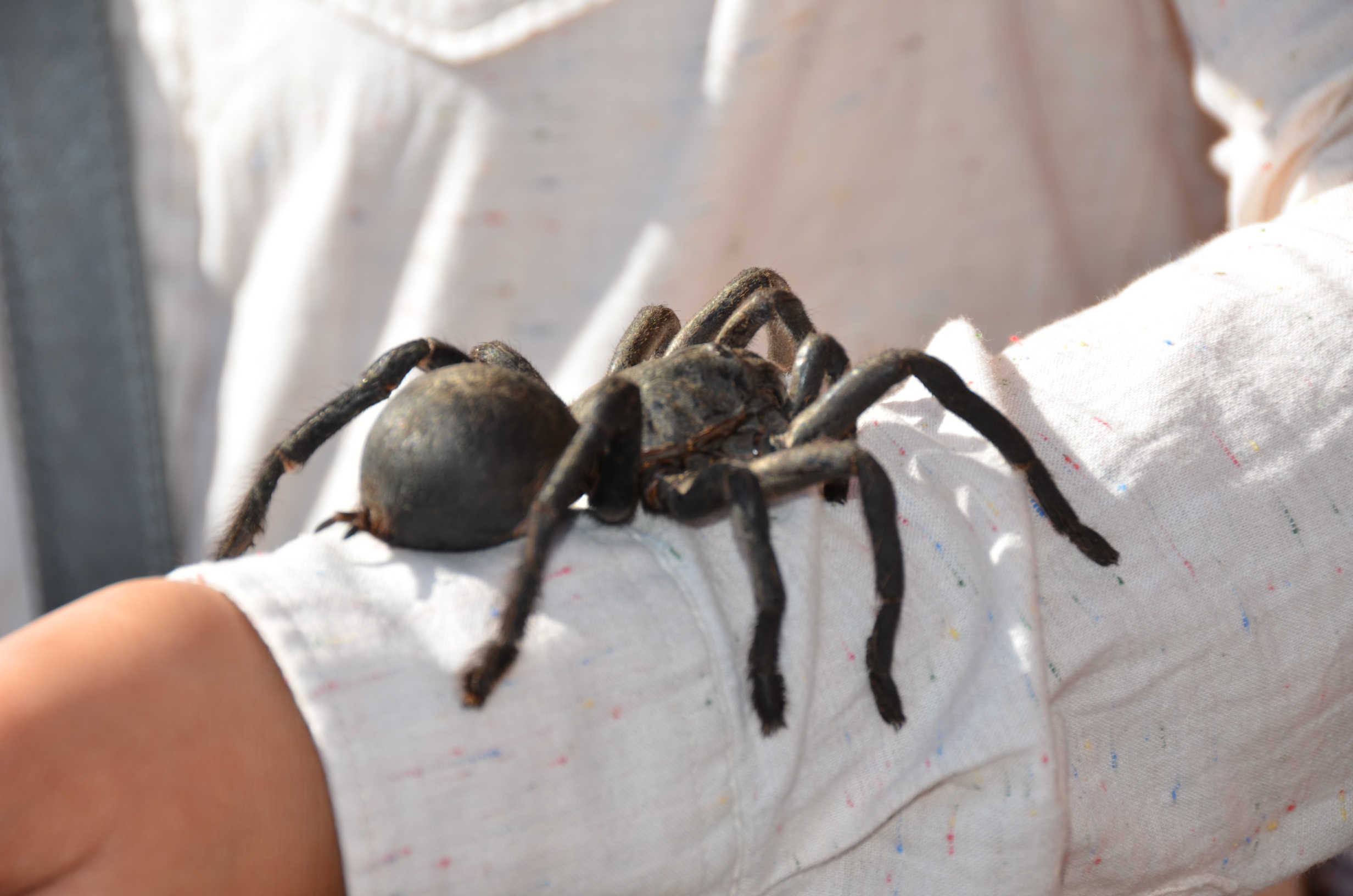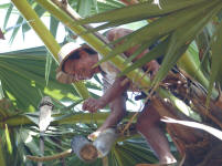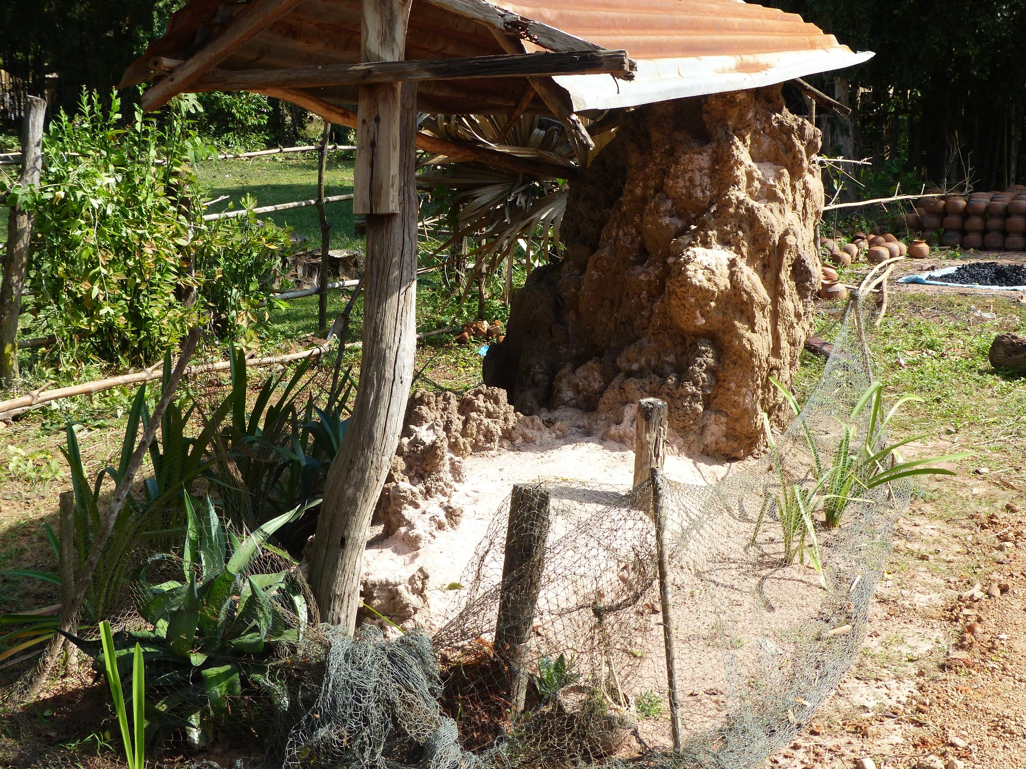 Nous continuons notre visite par l'exploitation de palmier à sucre et sur le chemin, une termitière