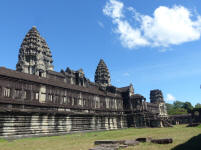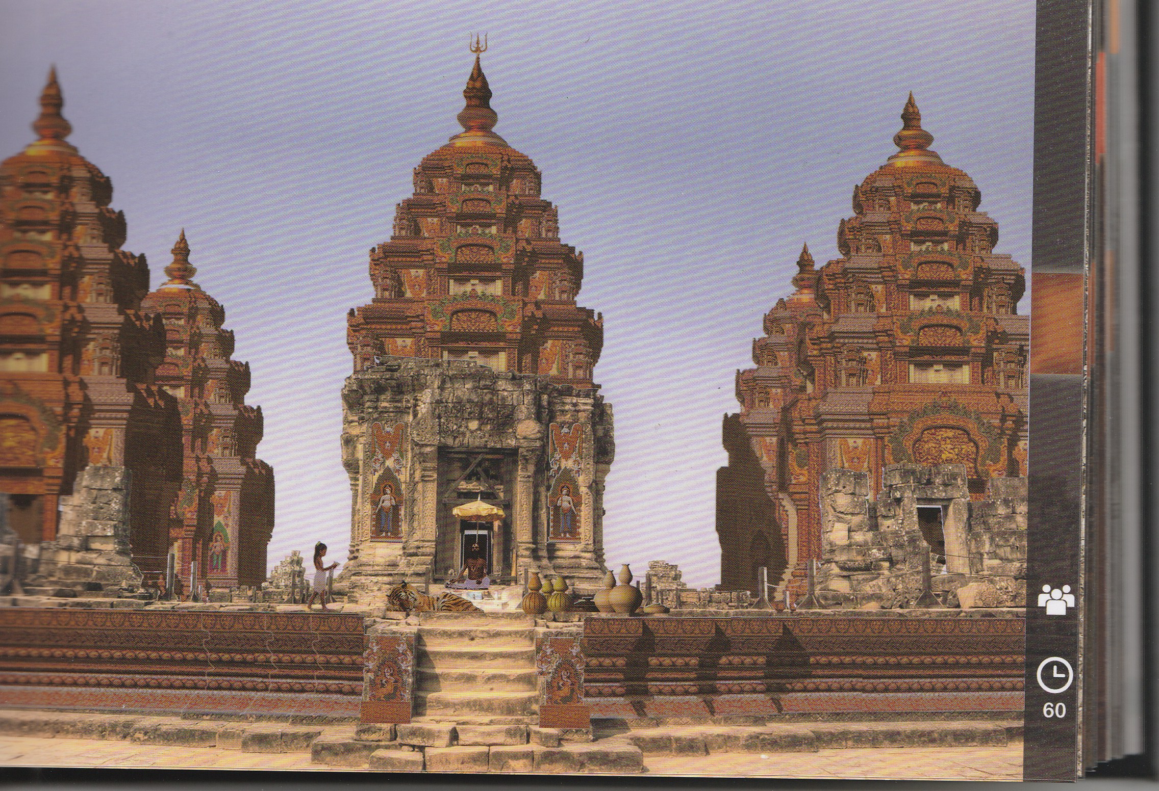 Je ne vais pas vous énumérer les temples visités ... ces nom fastidieux sont très compliqués, à part le plus grand, Angkor Wat ..... Je vais plutôt essayer, à l'aide d'un livre que nous avons acheté de vous montrer ces temples aujourd'hui mais aussi à l'heure de leur luxuriance. Il y aura donc des photos que nous avons prises et celle du livre qui nous montre le même temple à l'époque.