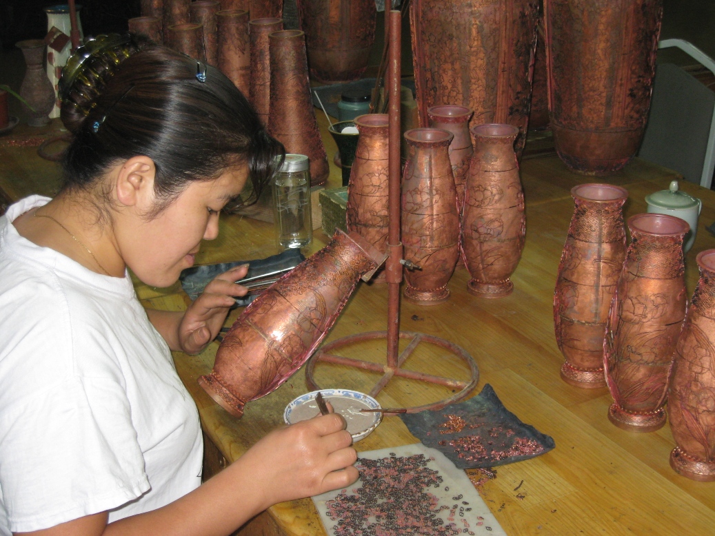 Puis nous visitons un atelier de poteries ou sont faits ses fameux vases chinois que personnellement je n'aime pas beaucoup mais le travail semble compliqué et très soigné