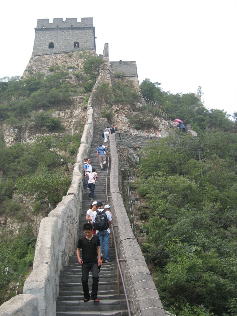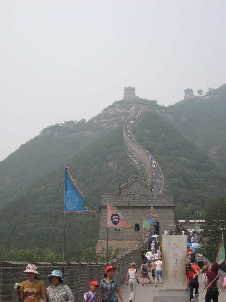 Le lendemain, nous allons voir la grande muraille ! Dans la purée de poids !!!!! On distingue la muraille au loin et c'est franchement très très impressionnant cette muraille qui chemine à travers tout !!!
