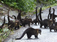 Coati à nez blanc ... marrants avec leur queue en l'air ....