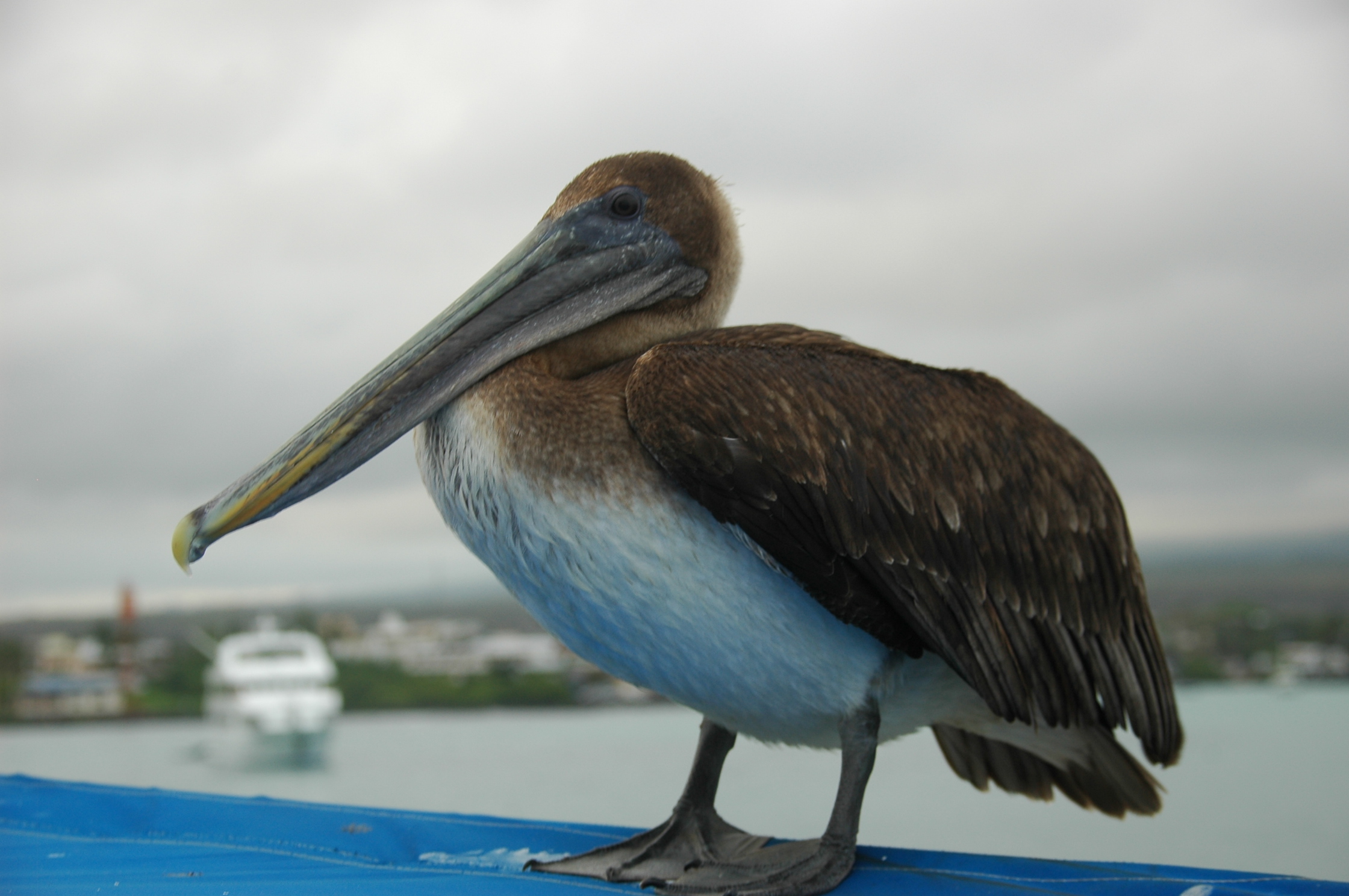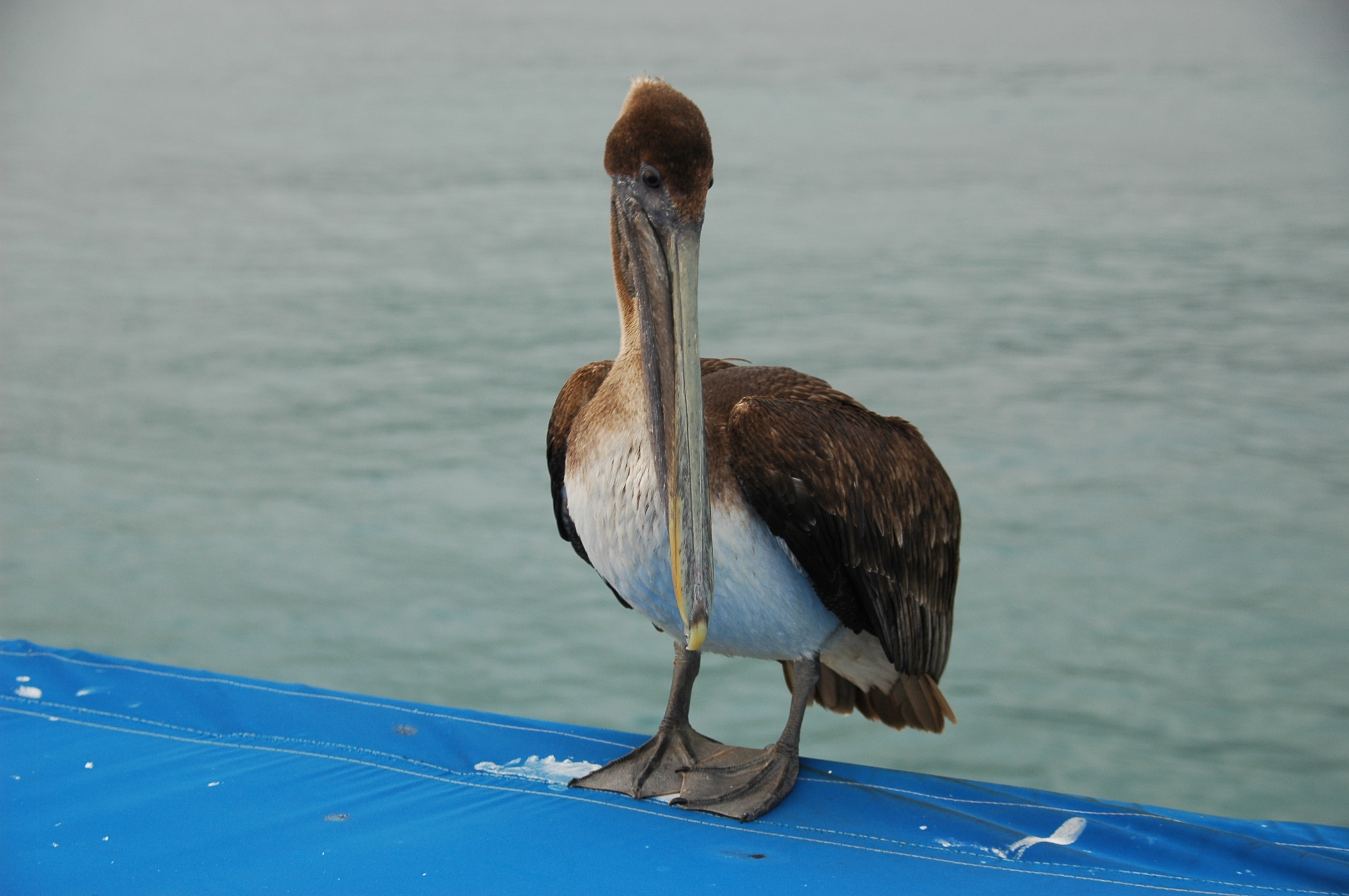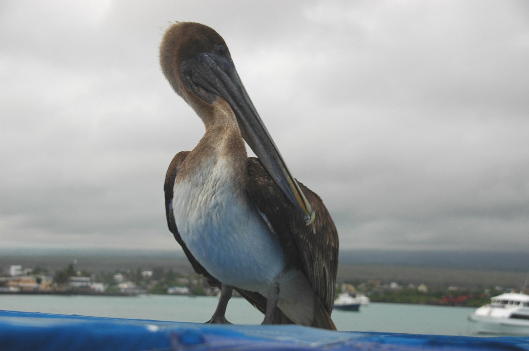 Dernières photos sur le bateau, et un pélican nous fait le plaisir de nous dire au revoir ....