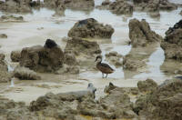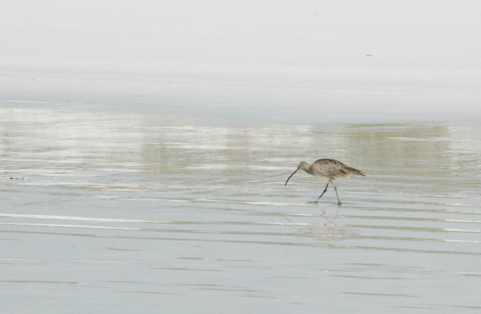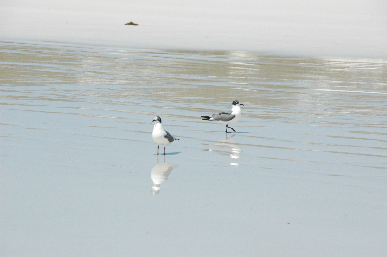Nous atteignons la plage, superbe -, avec son sable farineux tout blanc, c'est magnifique et les oiseaux se reflètent dans l'eau ....