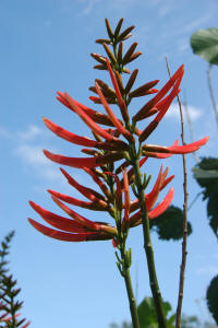 Aujourd'hui, nous entamons une balade vers la fameuse Tortuga Bay qu'il ne faut pas manquer.... Les abords de notre village sont très fleuris et j'en profite pour vous présenter une végétation très diverse.