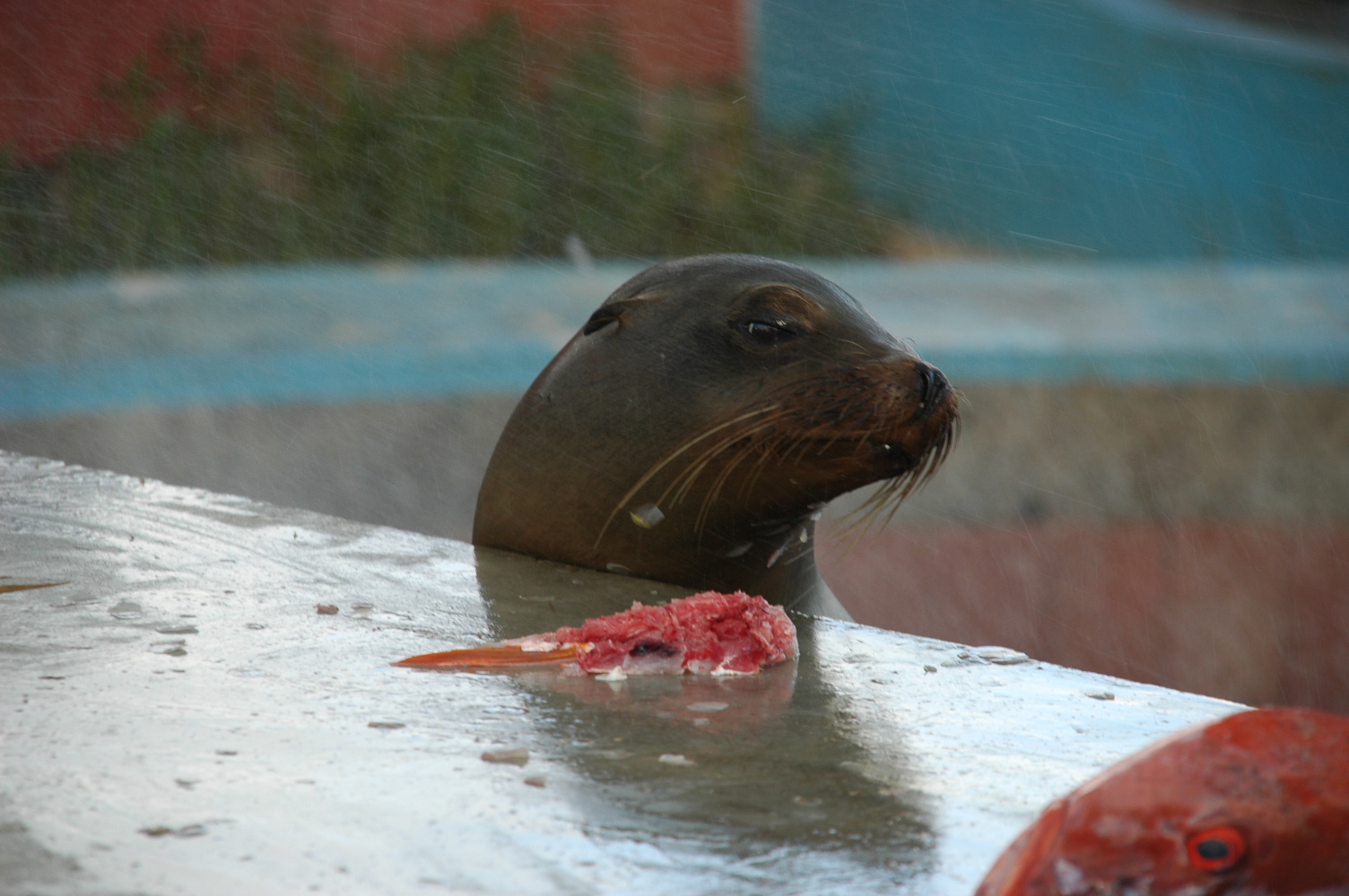 Nous découvrons le marché aux poissons. Vers 17J, les pêcheurs reviennent au port dans leurs barques bleues. Il va se passer des choses hallucinantes dans ce marché .... Lions de mer et pélicans se battent pour voler des peaux de poissons ou des abats quelconques ... une folie que nous retrouverons tous les jours en fin de journée et que je vais essayer de vous résumer ici en image, tant nous avons apprécié ces moments .....