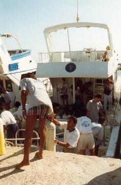 Nous arrivons au bord d’un rif ou déjà d’autres bateaux nous ont précédés