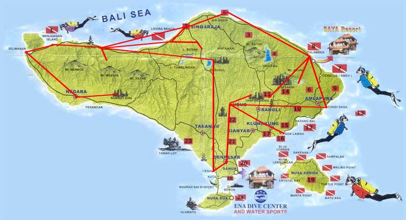 Comme vous voyez j'ai écumé l'île en tout sens. Je vous présenterai donc ce joyaux d'Indonésie en trois phases : le nord-est, l'ouest et le sud, pour terminer par une page sous l'eau de mon plongeur.