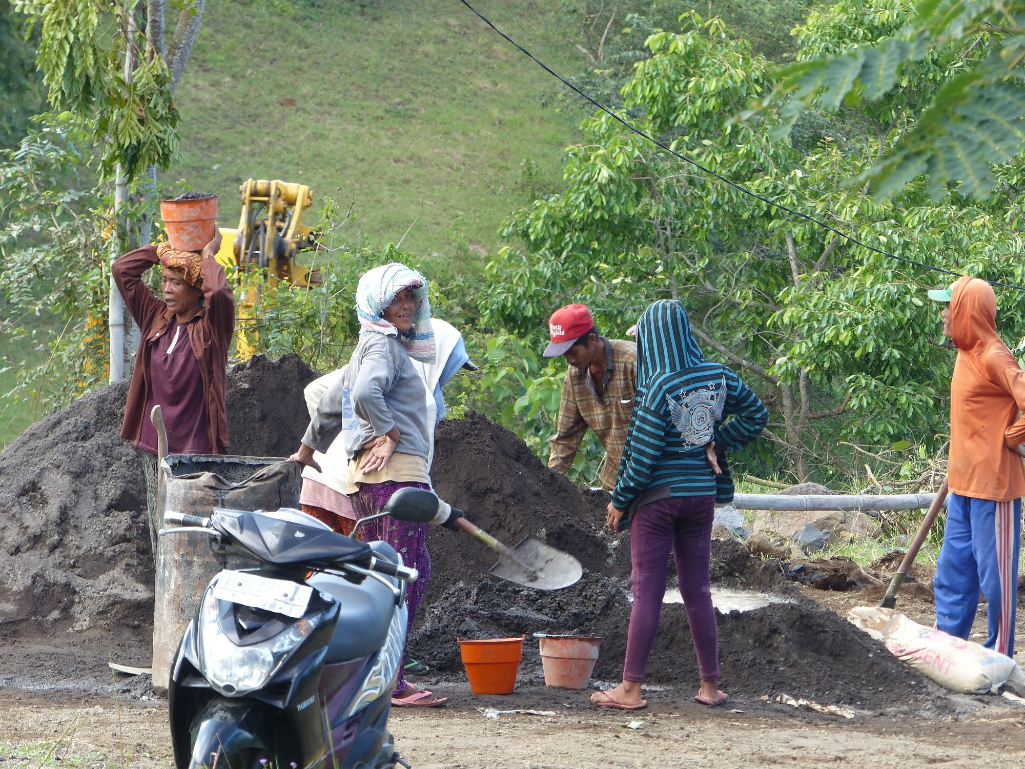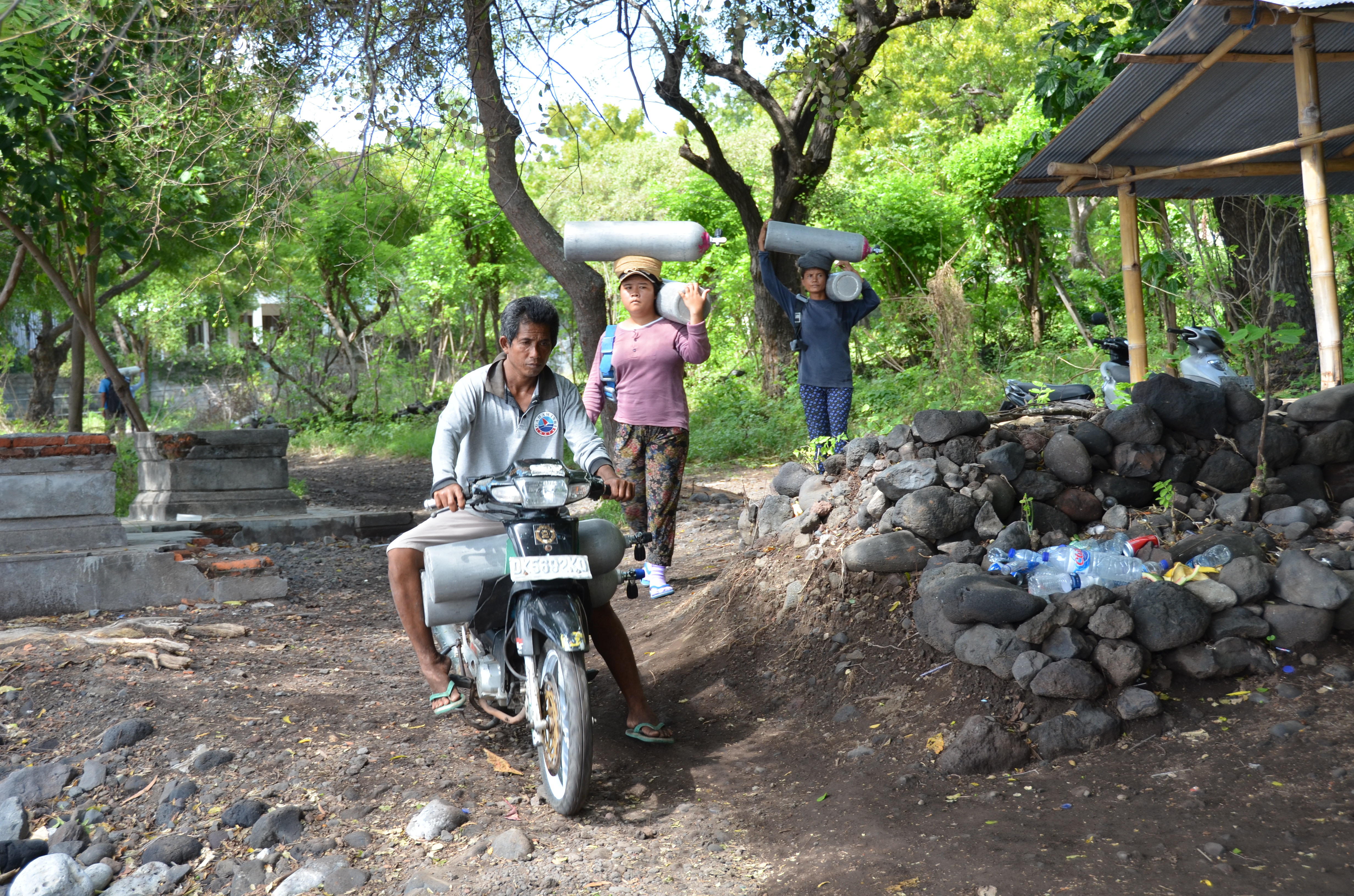 Petite page de transition dans cette narration photographique ..... Les femmes !!!!! Oui me direz vous .... qu'y a t il a dire sur les femmes sinon qu'elles sont si belles en Indonésie....mais surtout que ce sont de très grandes travailleuses. En effet, traditionnellement parlant, les femmes font les travaux les plus durs, les plus pénibles .... j'ai quelques photos pour l'illustrer, que ce soit pour les routes, pour la plongée, pour les champs .... qui bosse ????? Les femmes et uniquement les femmes, enfin très souvent. D'ailleurs les hommes disent souvent qu'ils ne voudraient pas être réincarnés ni en chien .... ni en femme .....