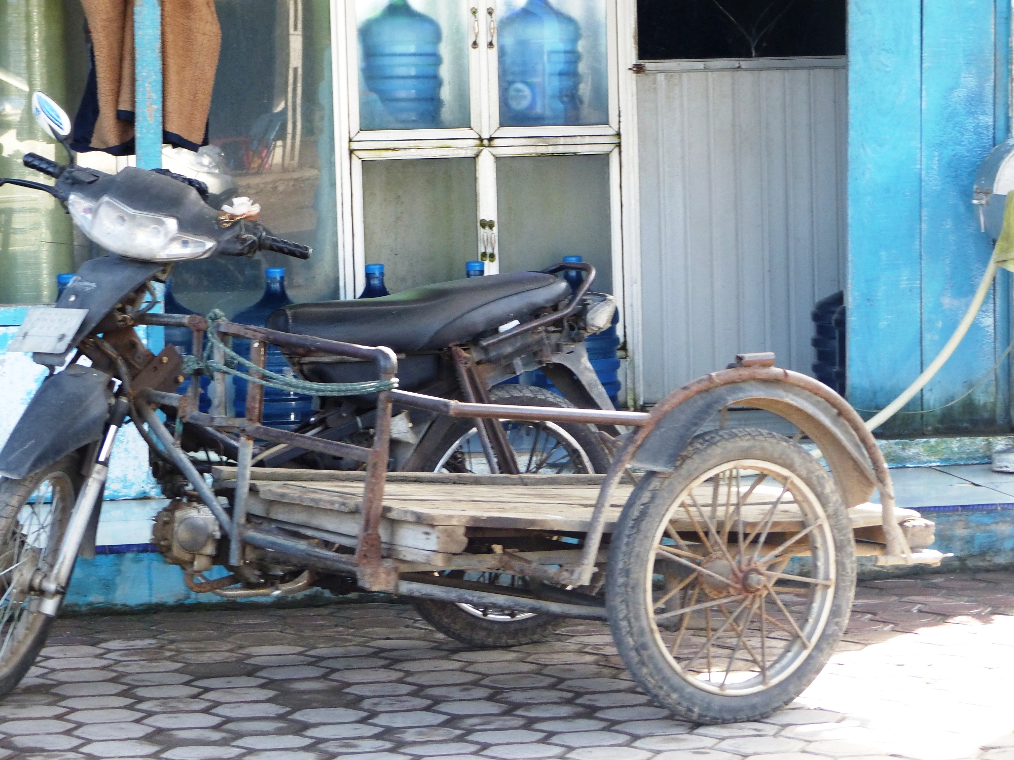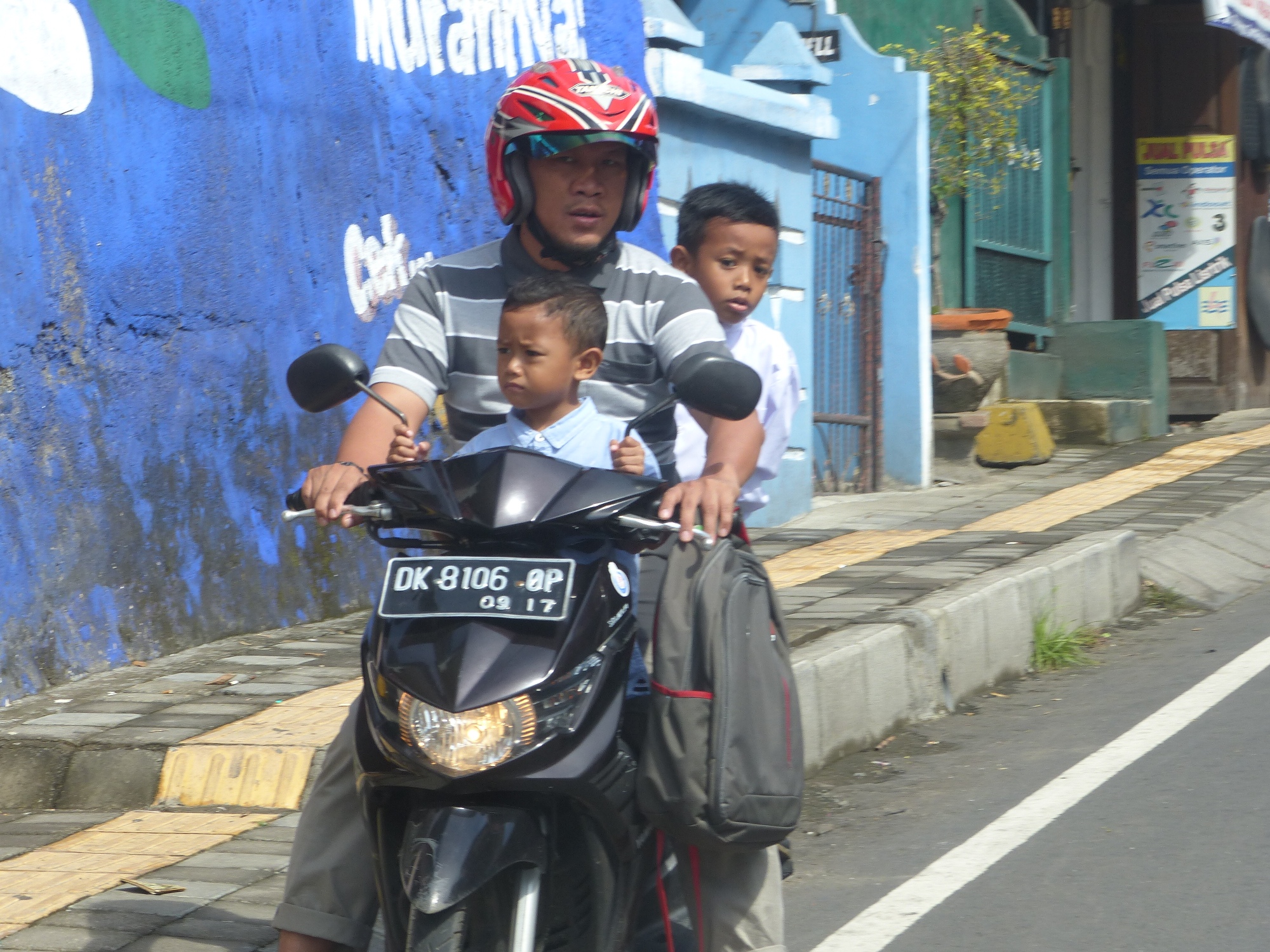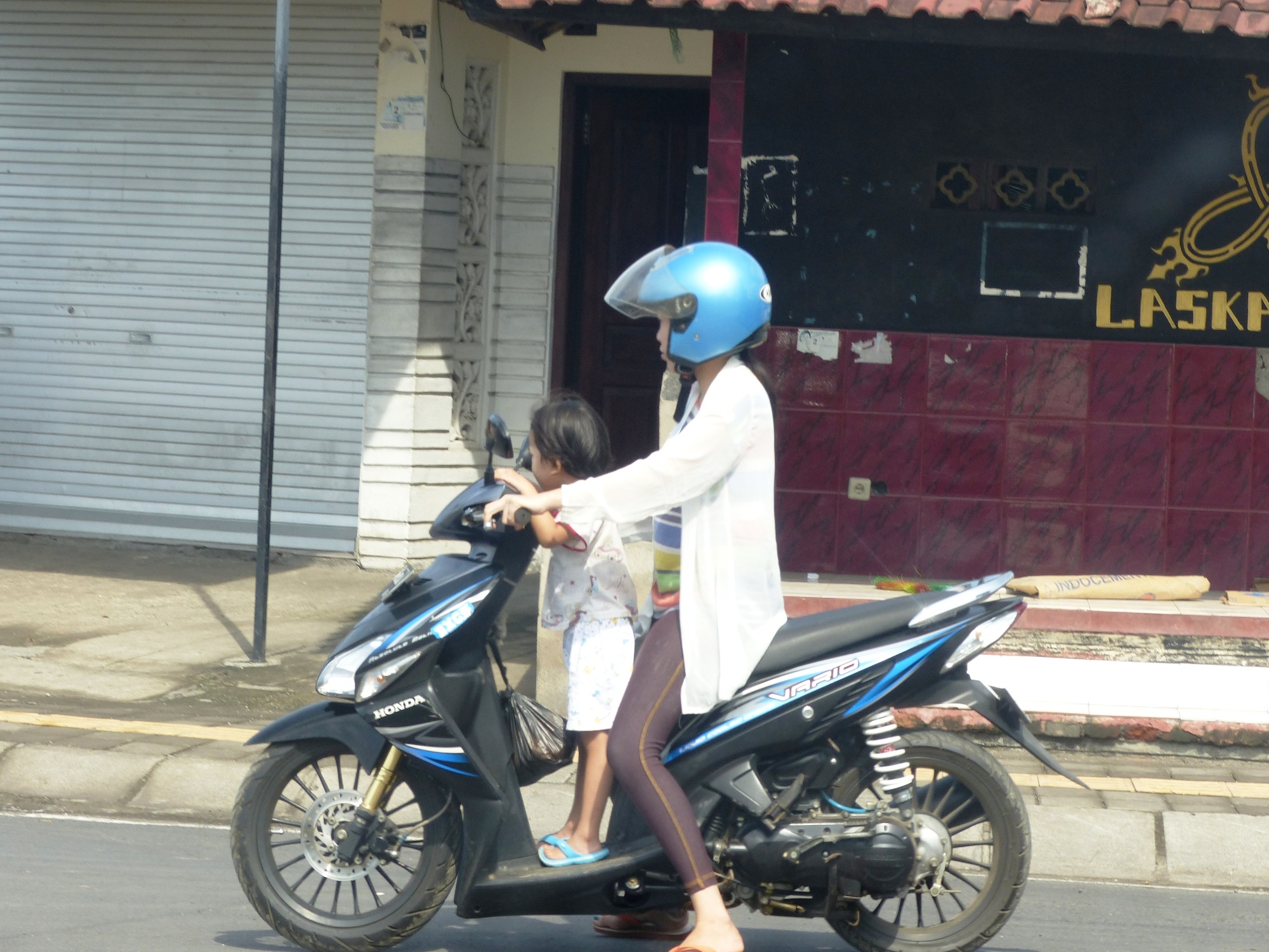 Maintenant un petit mot sur les motos .... elles grouillent partout ... sont surchargées bien souvent et notamment par les enfants ... un devant, un derrière, entre les parents ... et celui qui est devant est debout et bien souvent il sait à peine marcher ..... stupéfiant ....