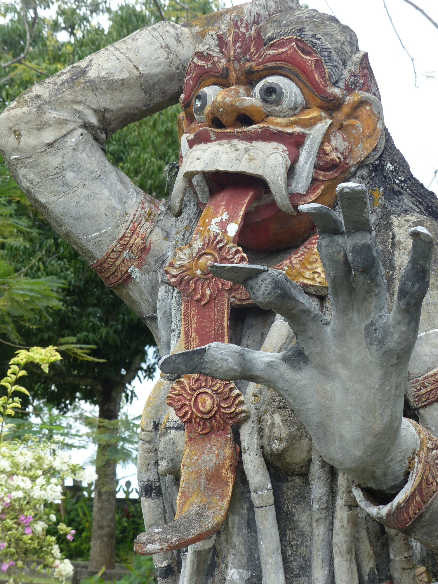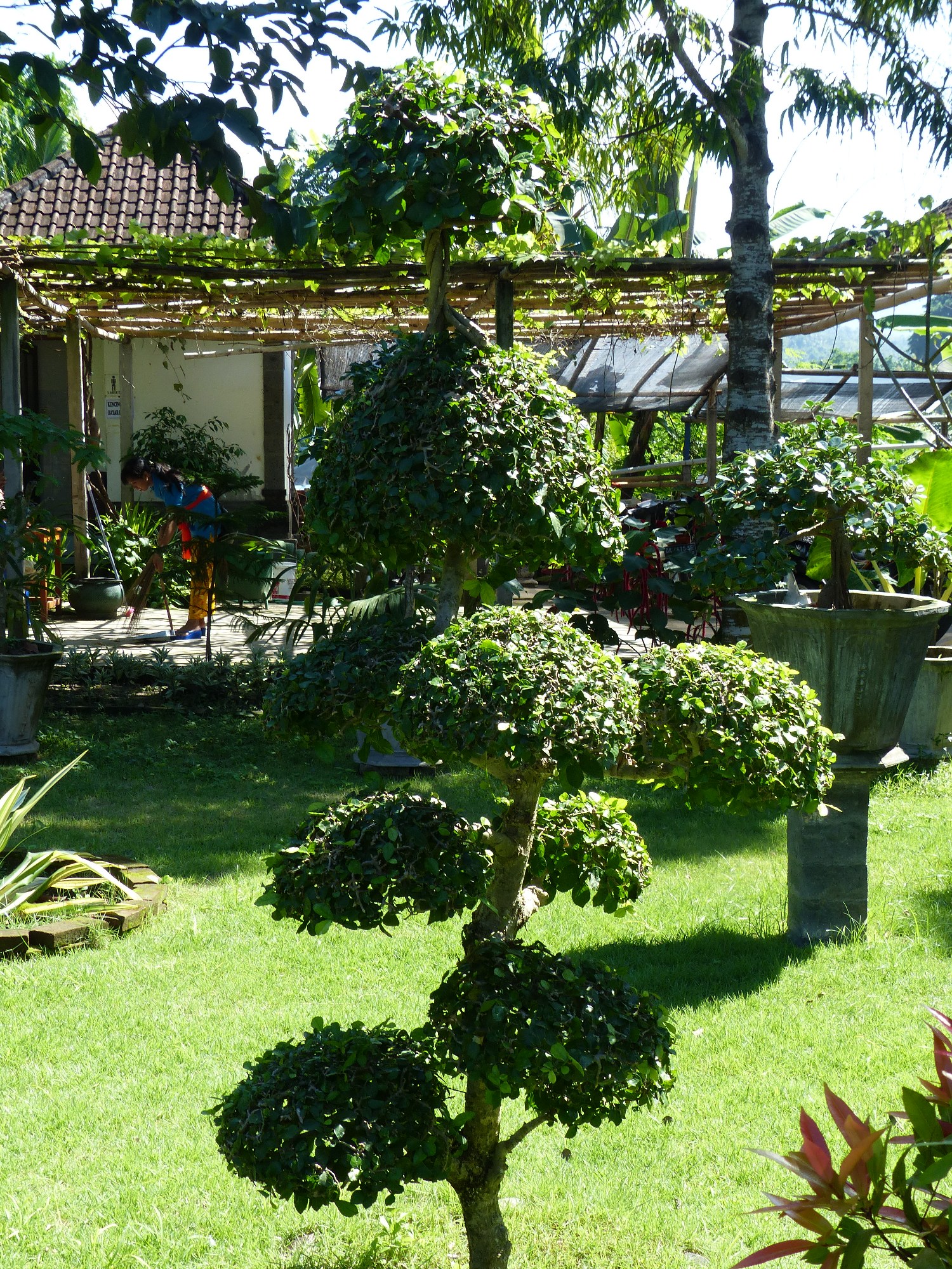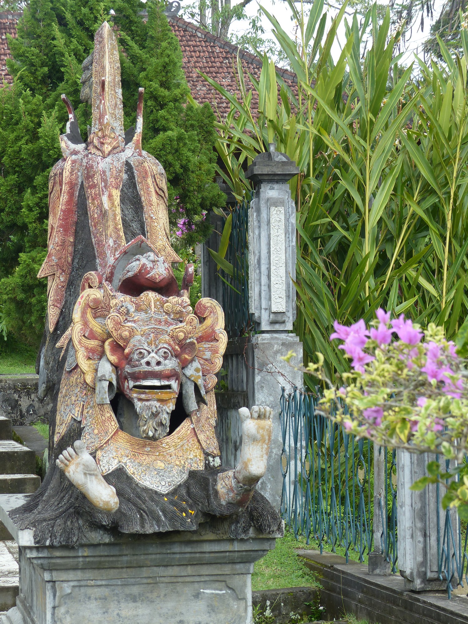 A l'entrée, la guichetière passe son temps en confectionnant des petits paniers en feuille de palme pour les offrandes ... c'est vraiment un beau travail très délicat .... Et une danseuse dans le parc