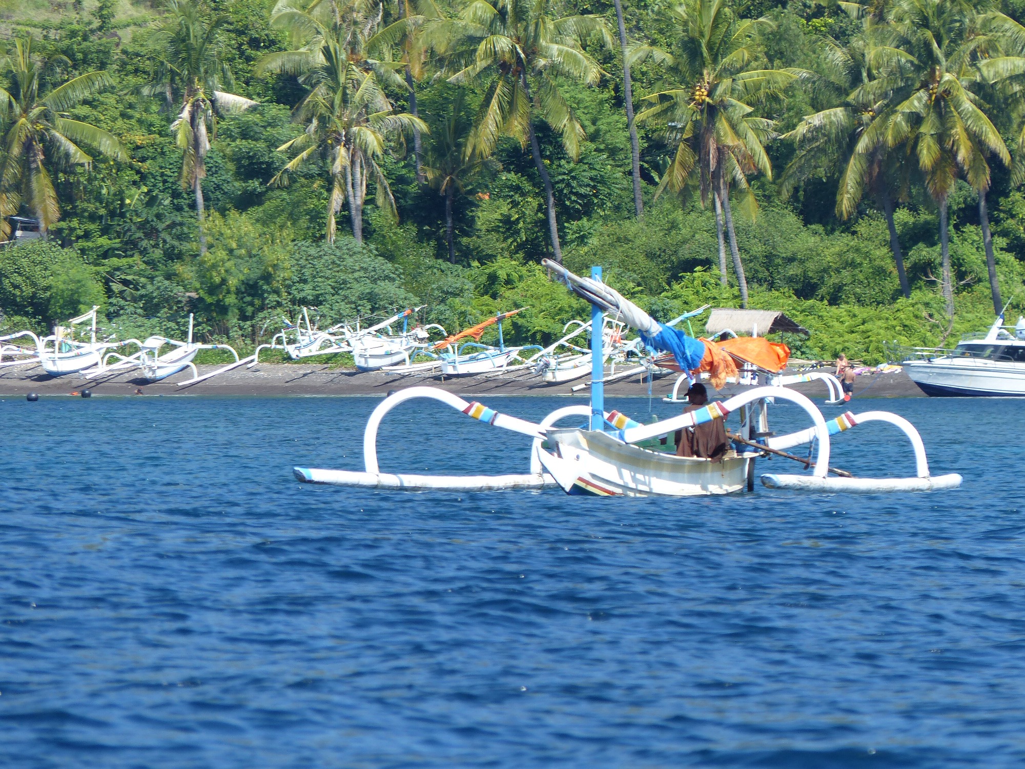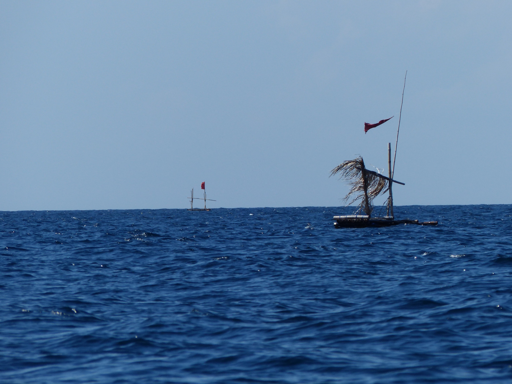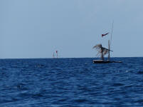 Au large, des pontons .... en fait ils pêchent sur les pontons, car les poissons se réunissent à l'ombre sous le ponton .... ingénieux non ?