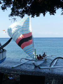 Un après midi, nous avons fait une balade en bateau traditionnel ... un peu bricolé il faut bien le dire .... le mat tient avec je ne sais quoi .... mais c'est agréable cette promenade .....