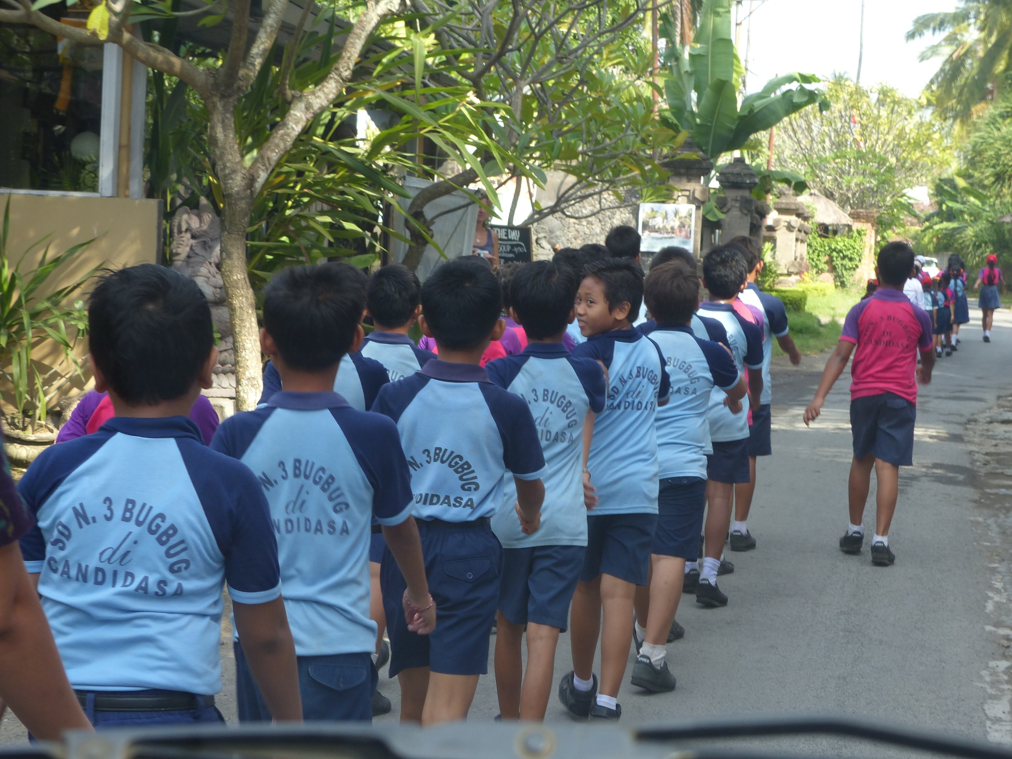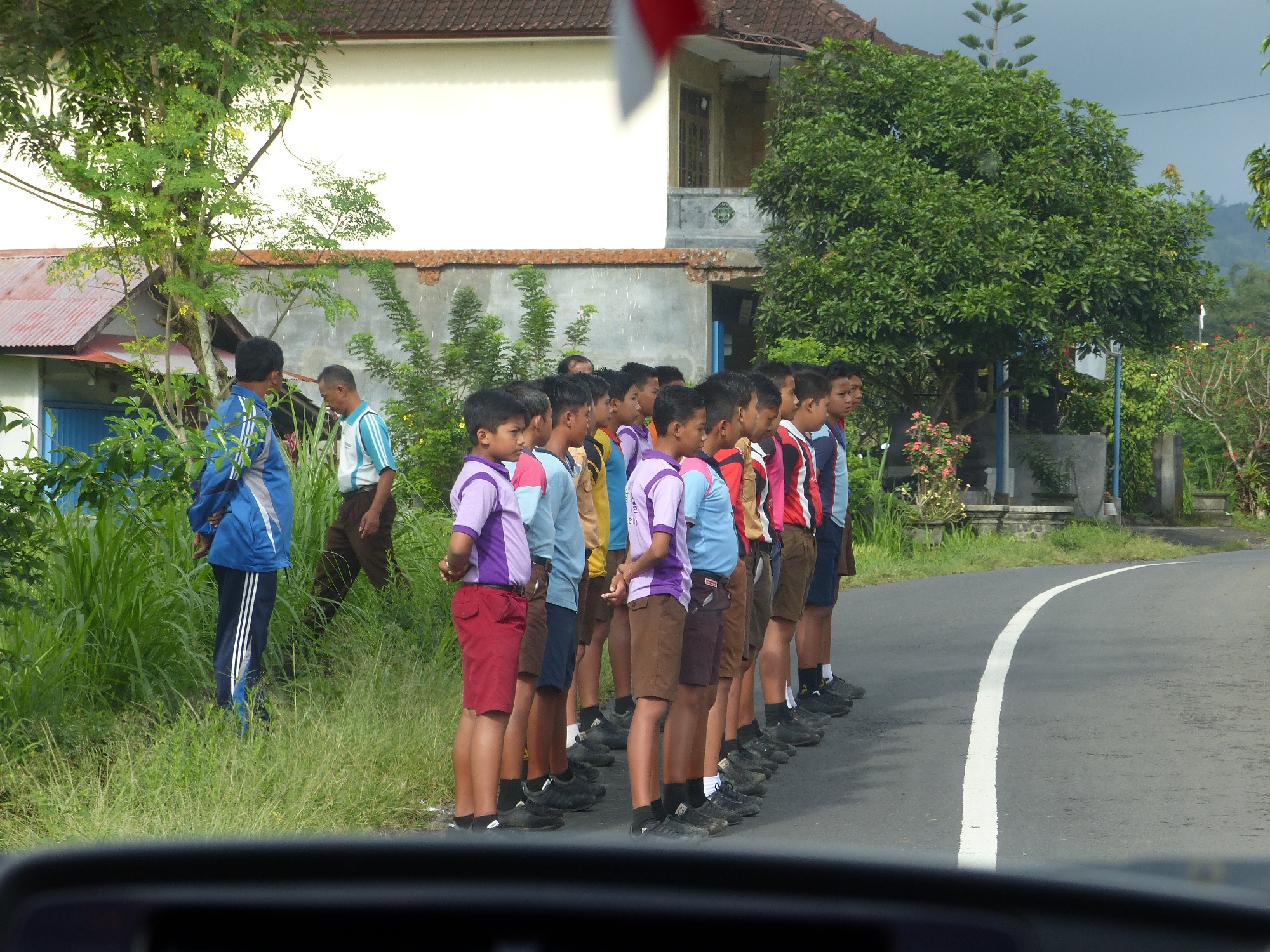 Les écoliers se préparent à la fête nationale et on en croise dans les rues, marchant au pas, garçons ou filles .... tous en sont ....