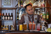 Et son élégant bar, où l'on sert des cocktails à toute heure ..... avec ces singuliers ventilateurs ....