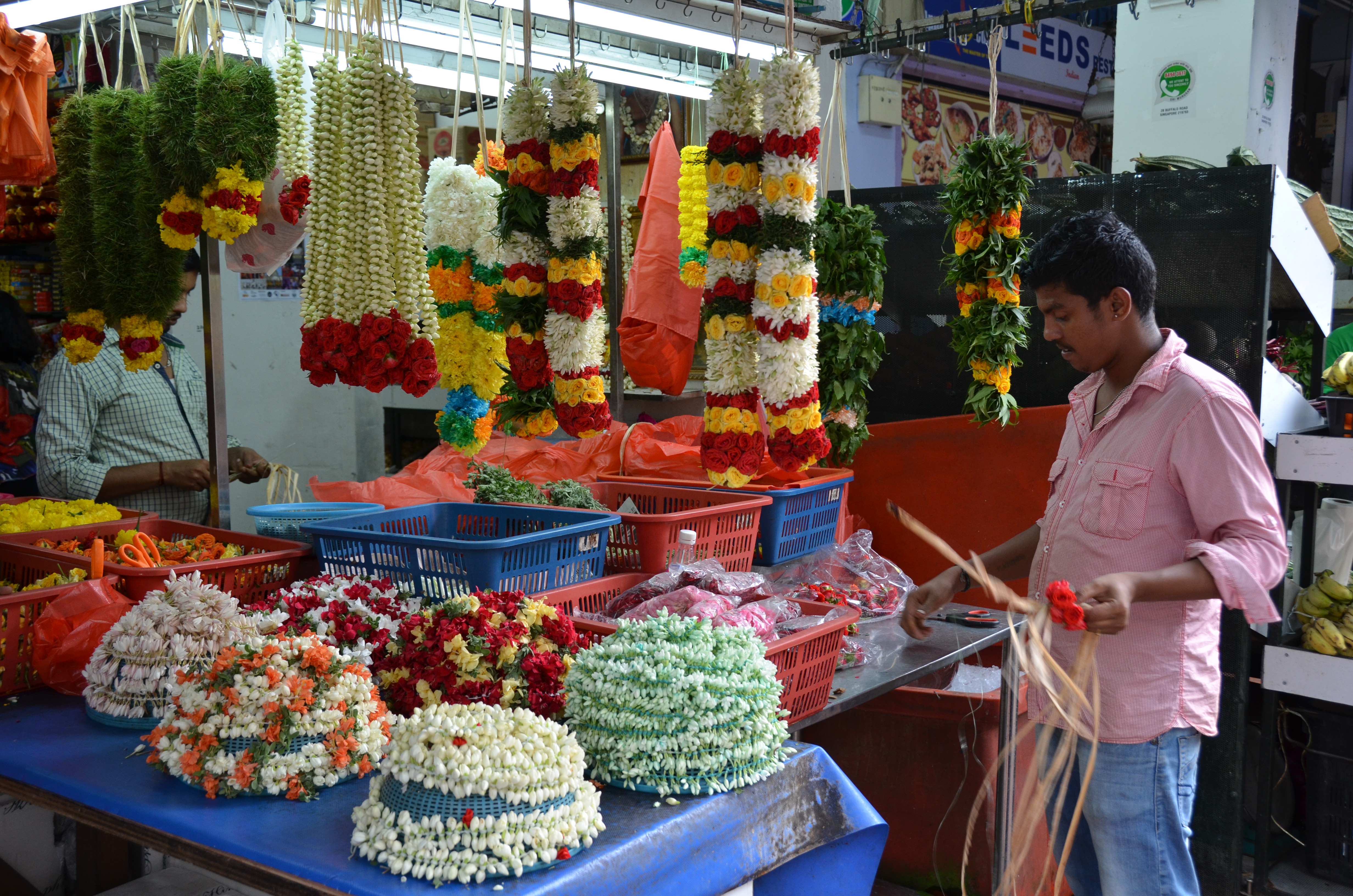 Ici les échoppes pour les offrandes et les colliers à fleur