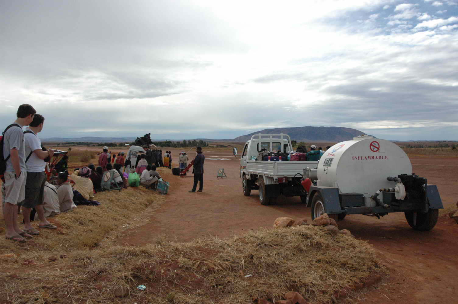 C'est le grand jour ..... Nous partons en avion pour le fleuve Manombolo. Bon l'essence attend l'avion ... quoi ??? le cercueil attend l'avion aussi ????? oups !