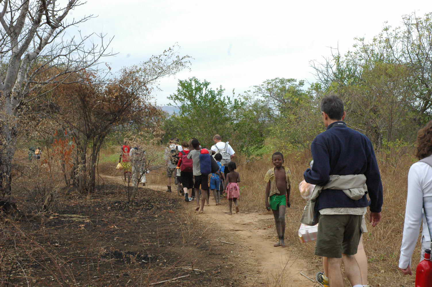 Et nous partons à pied dans la savane vers le fleuve et les kayak qui nous attendent