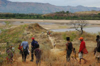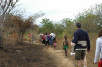 Les villageois s'occupent de nos bagages, qui sont nombreux ... les tentes, le ravitaillement, les sacs (autres que les sacs à dos - j'ai de la chance ... mon sac fait partie du lot )