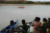 Dans l'attente, certains s'adonnent déjà au joies de la rame ! ils sont fous on va pagayer pendant 5 jours !
