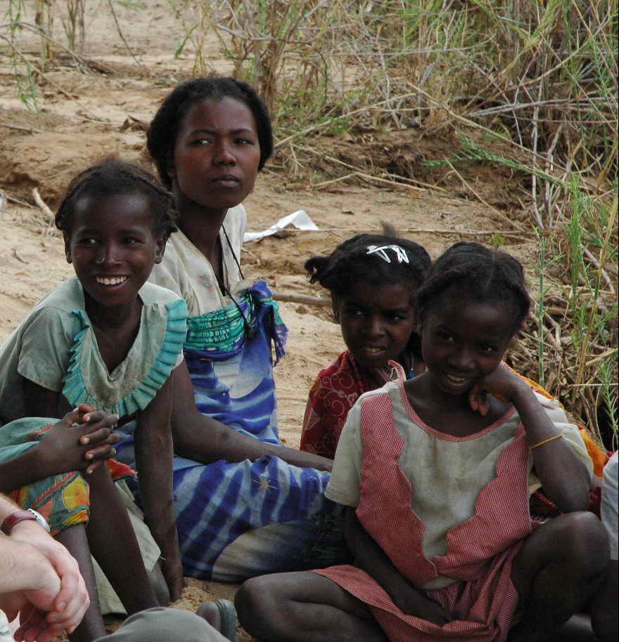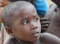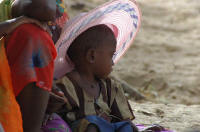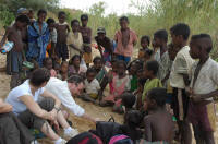 Nous nous abritons sous un arbre ....car .... l'aventure continue .... n'ayant pas leurs sacs, donc pas leur sacs de couchage non plus, nos amis doivent recevoir une couverture que le guide va aller acheter au village voisin le plus proche ( à une h de marche) Nous nous installons donc .... et commençons à attendre devant des dizaines d'enfants qui nous regardent sans rien dire .....