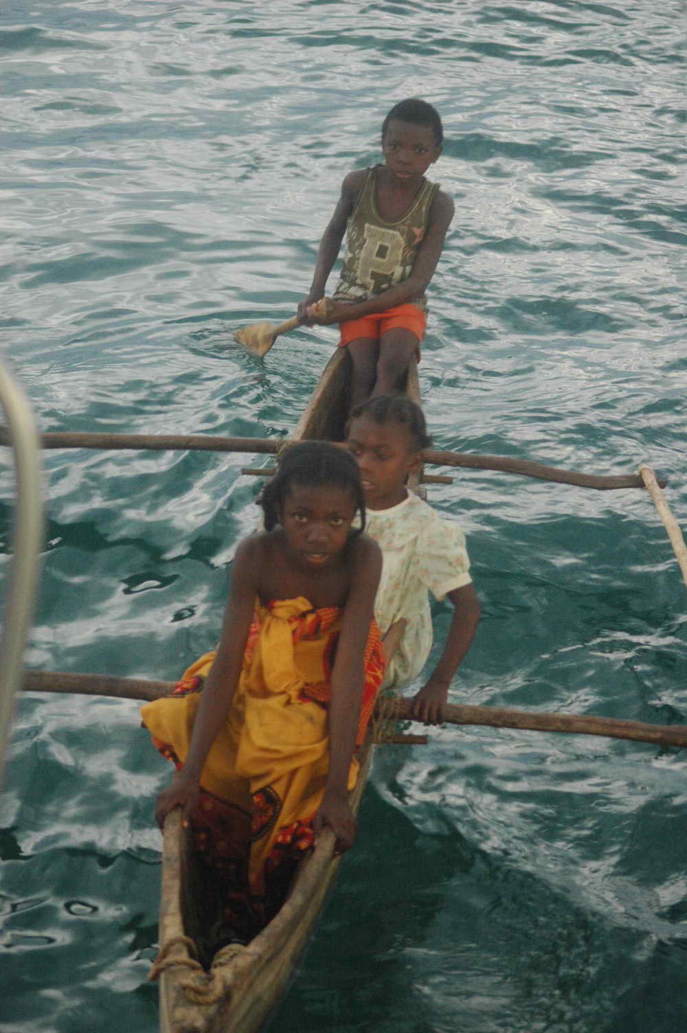 Tiens ... nous avons de la visite ... les enfants viennent nous proposer des petites langoustes ..... pour ... un paquet de cloppes .....