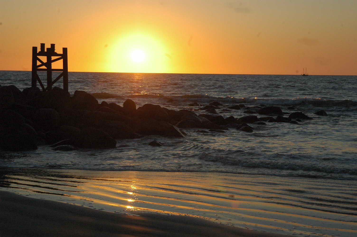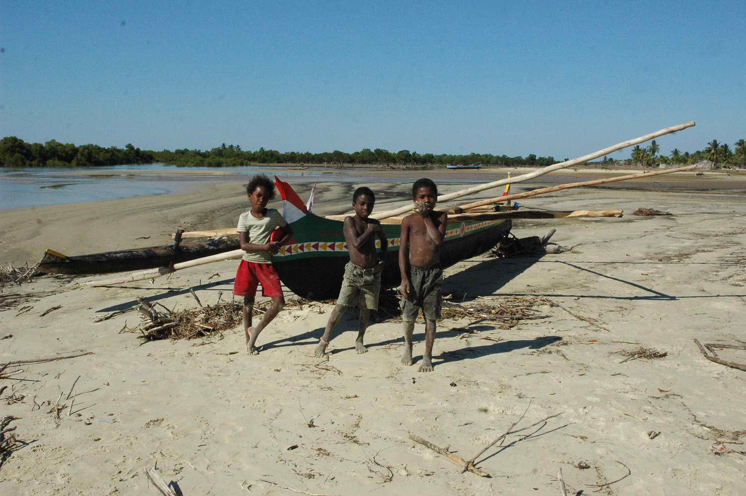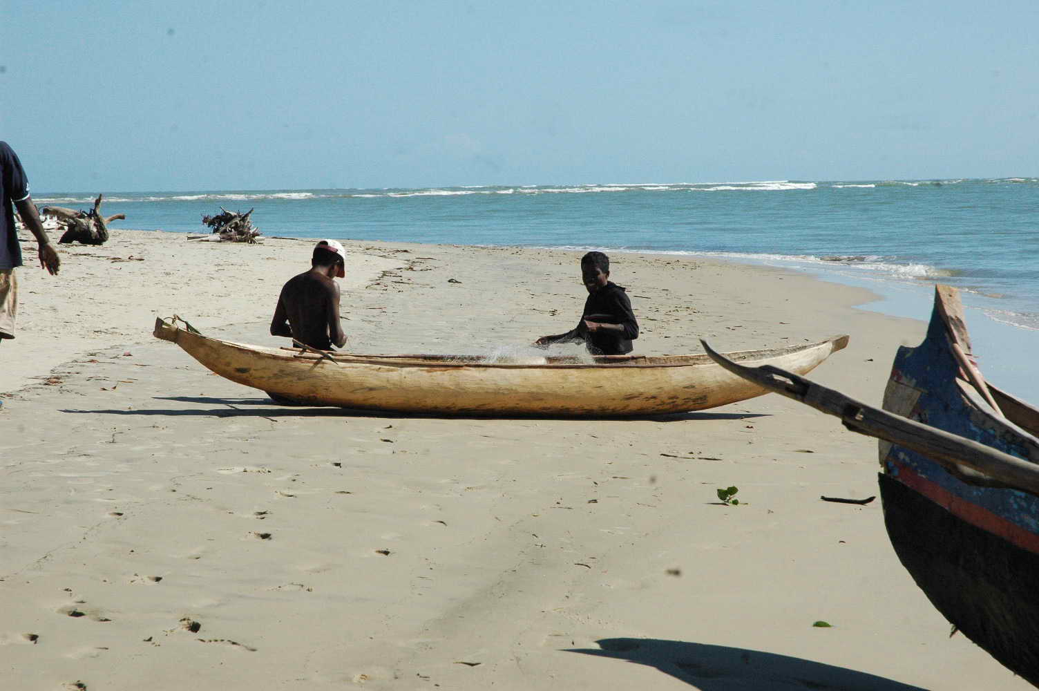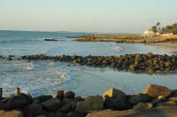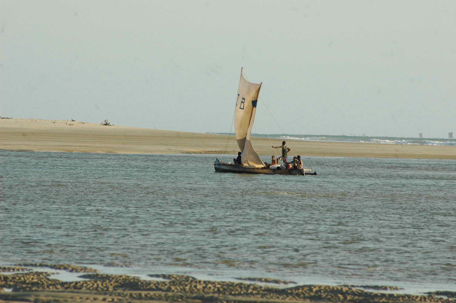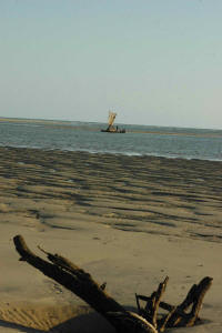 Plage superbe et très grande ... et retour des pêcheurs dans leur barque à voile .....