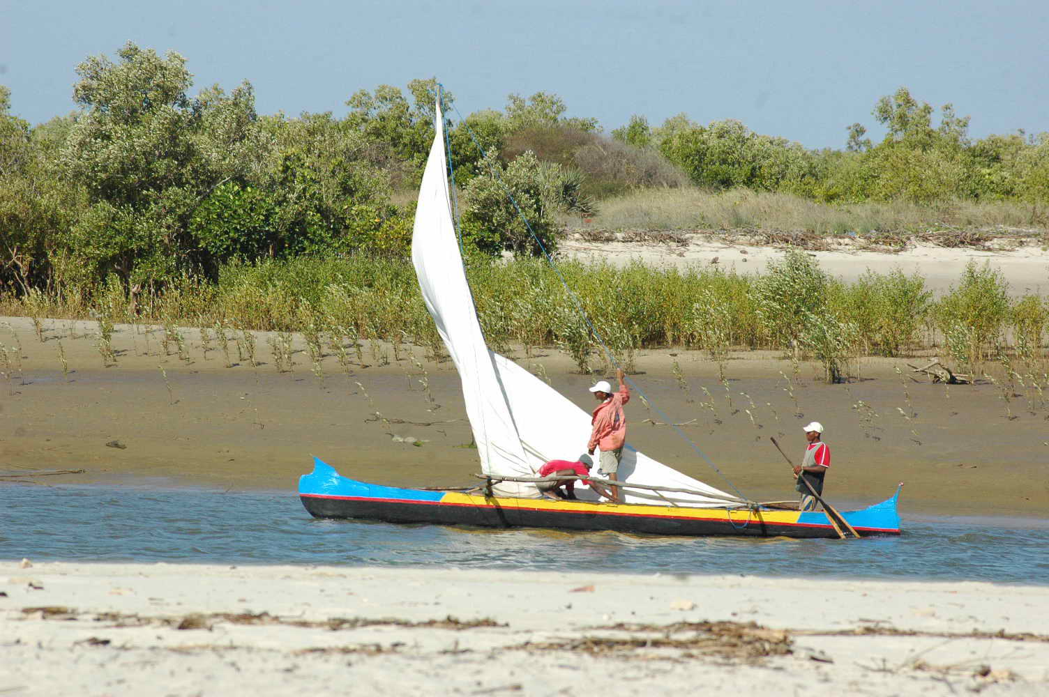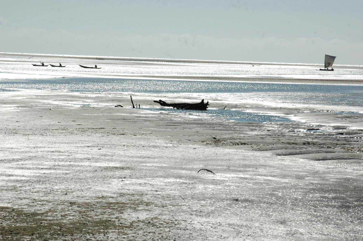 Les pêcheurs rentrent ..... mais la marée est basse l'eau se fait rare .....