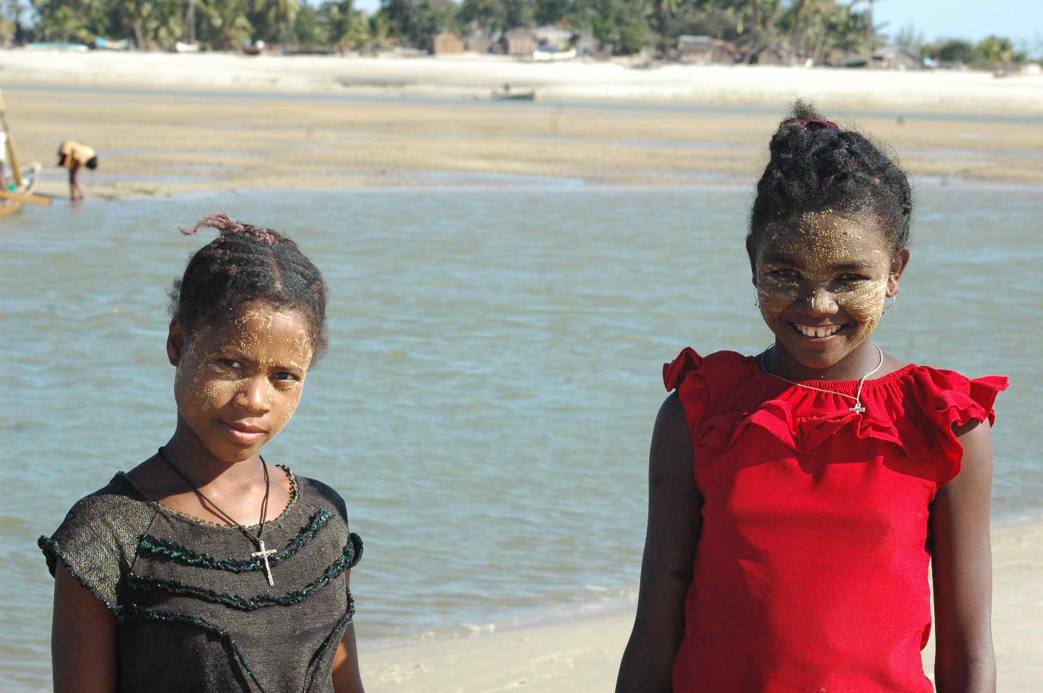 Ici deux jeunes filles le visage tatoué (pour le soleil qu'elles disent, mais ça me semble plus être de la coquetterie qu'autre chose ... )