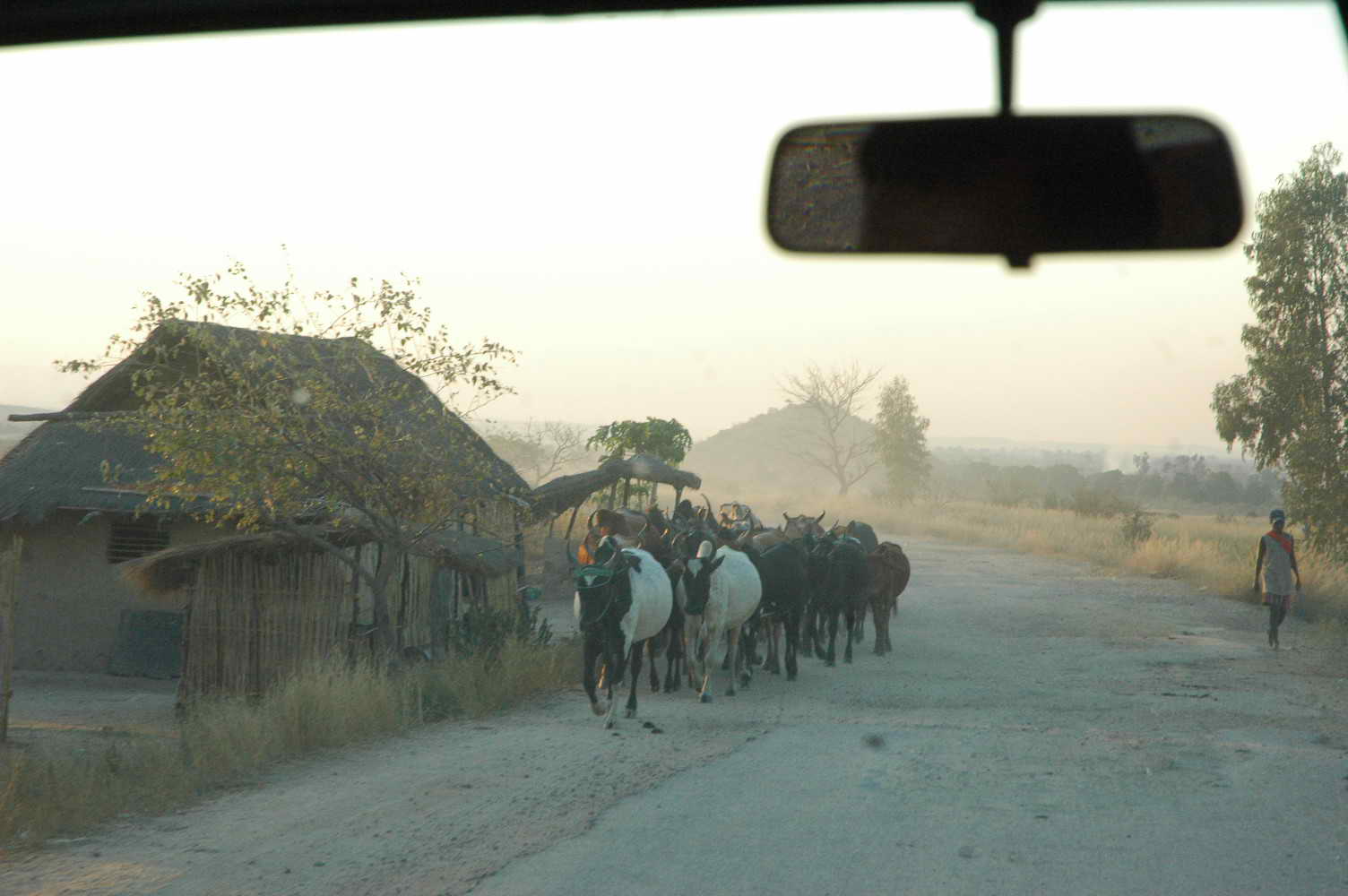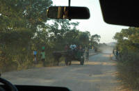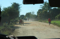 Route défoncée ..... doublant tantôt cyclistes tantôt zébus ... tantôt des gens à pieds toujours chargés .... les paysages défilent .....