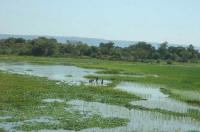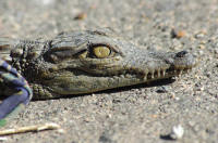 Arrêt à un barrage où un homme nous attend avec un crocodile minuscule ... il veut nous le vendre ... hé oui !!!