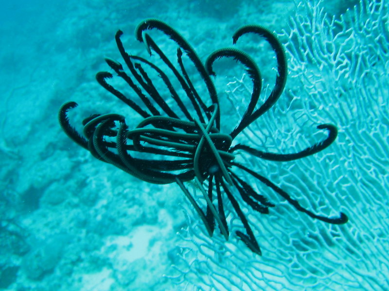 Un superbe Holacanthe à front jaune et une crinoïde qui tend les bras