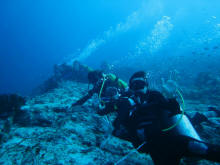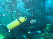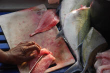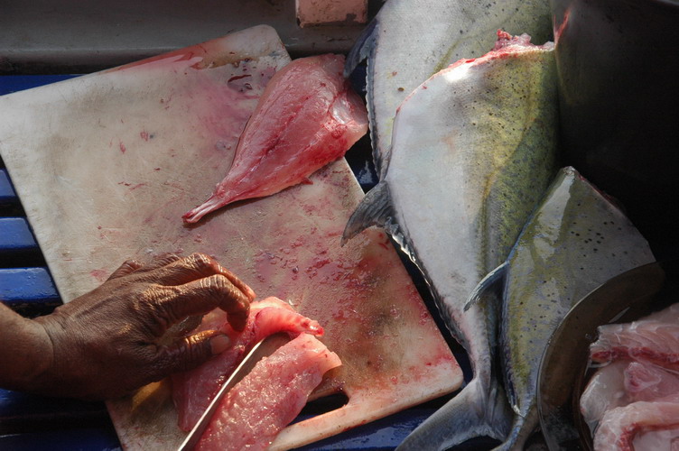 Après la plongée .... mouillage près d'une ile déserte et préparation des poissons pêchés ce jour, et enfin ce n'est plus de la bonite !!!