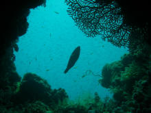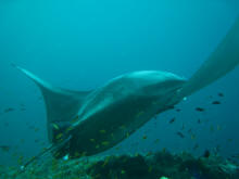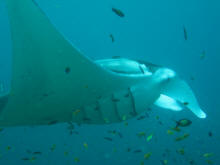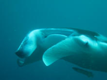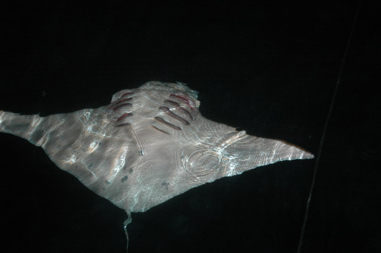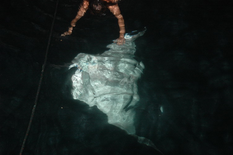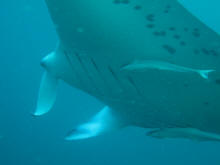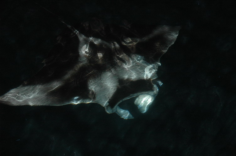 La surprise du soir ... Nous avons eu une visite ... une visite extraordinaire d'une raie Manta qui se nourrit à l'arrière du bateau ... elle nous a fait un balai de trois heures !!! Elle venait vraiment jusqu'à la surface et nager avec elle fut un régal inoubliable !!!!!!