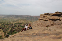 Nous reprenons la piste ... à peine visible, pour arriver à notre premier véritable campement de Banani. Nous dormons et mangeons sur le toit !