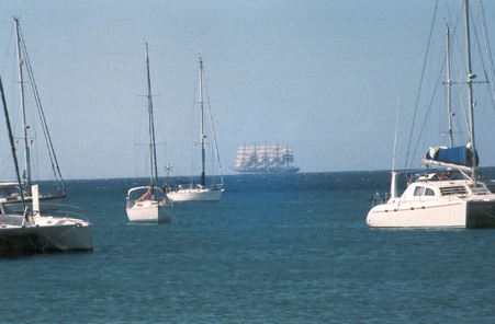 Puis d'un coup ... là au fond du paysage un énorme 5 mâts, un russe parait il ....