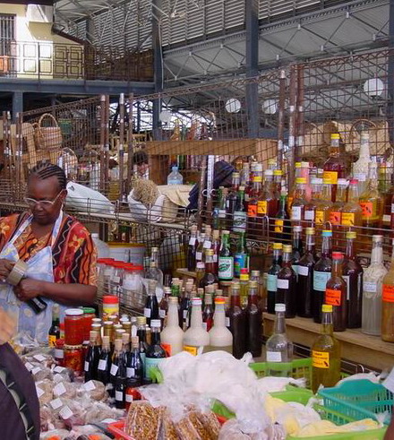 Halte au marché .... incontournables bouteilles de rhum à toutes les sauces, vanille et épices... on a le choix !