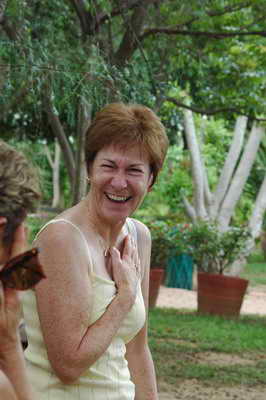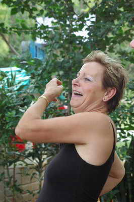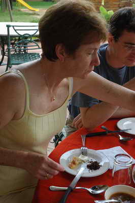Heure de midi très sympathique devant un déjeuné varié et ..... des sauterelles !!! et elle les a mangées !!! C'est juré !