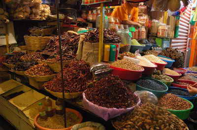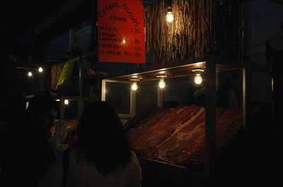 Ici la pulpe de Tamarin ... et les petits restaurants de grillades dans la pénombre....