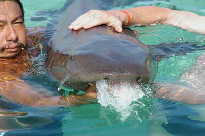 Arrêt pour nager avec un requin dormeur ... beurkkk pas beau celui là !