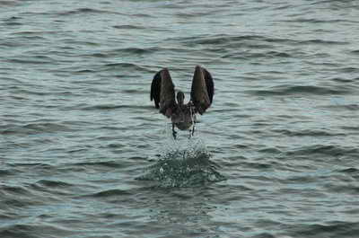 Et nous tombons sur un "nid" de pélicans en pleine chasse ! Il a vu un poisson ! Il plonge !