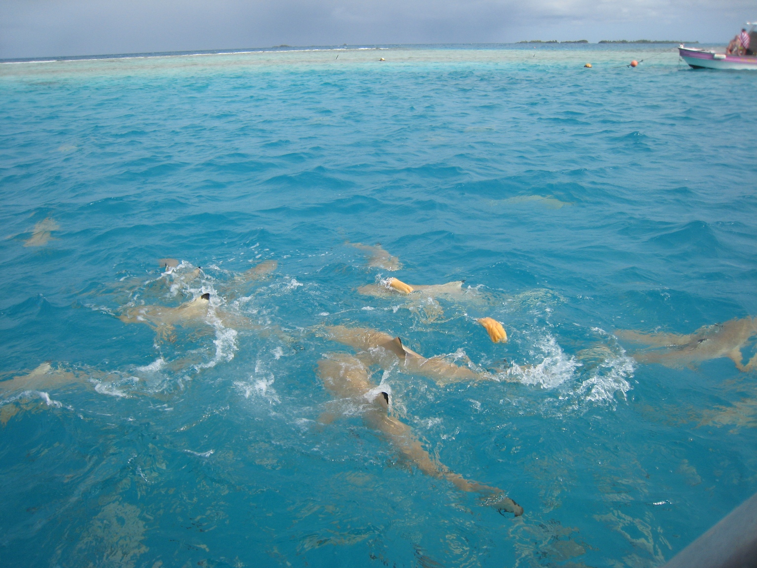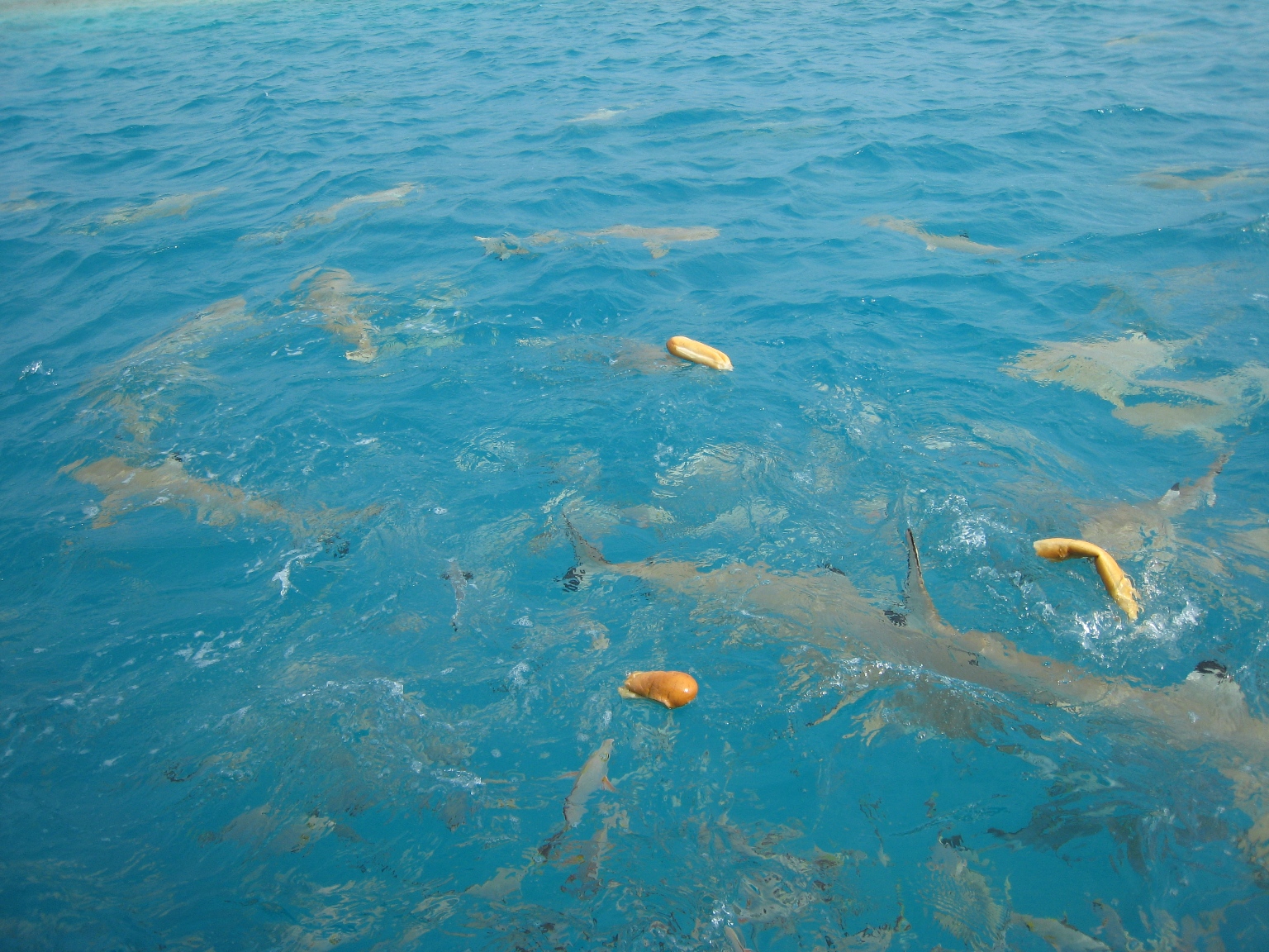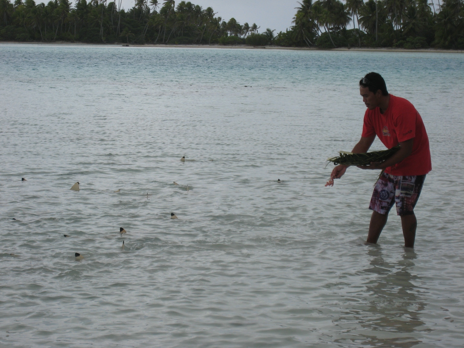 Pendant que les requins par dizaine attendent leur déjeuner ....