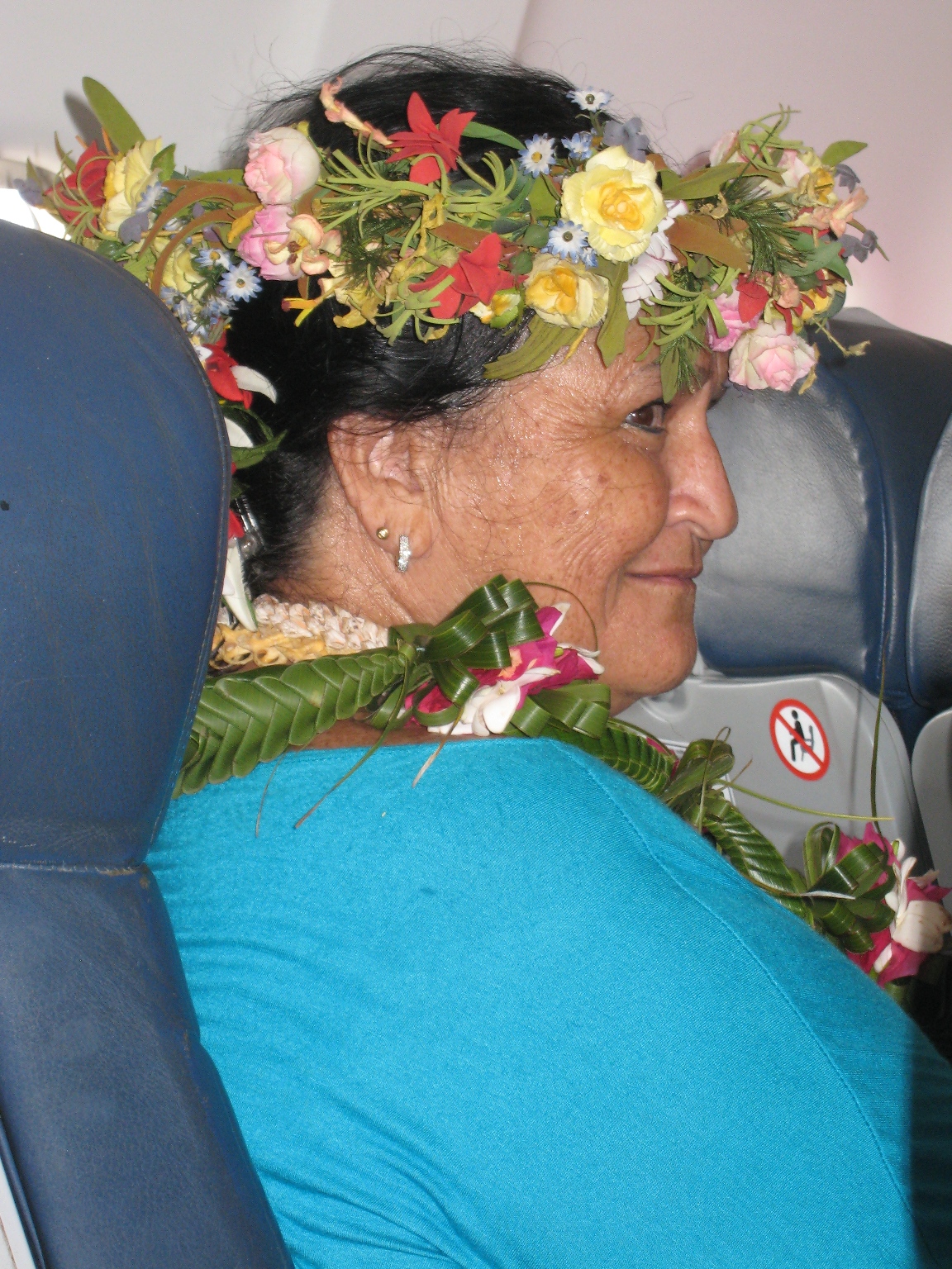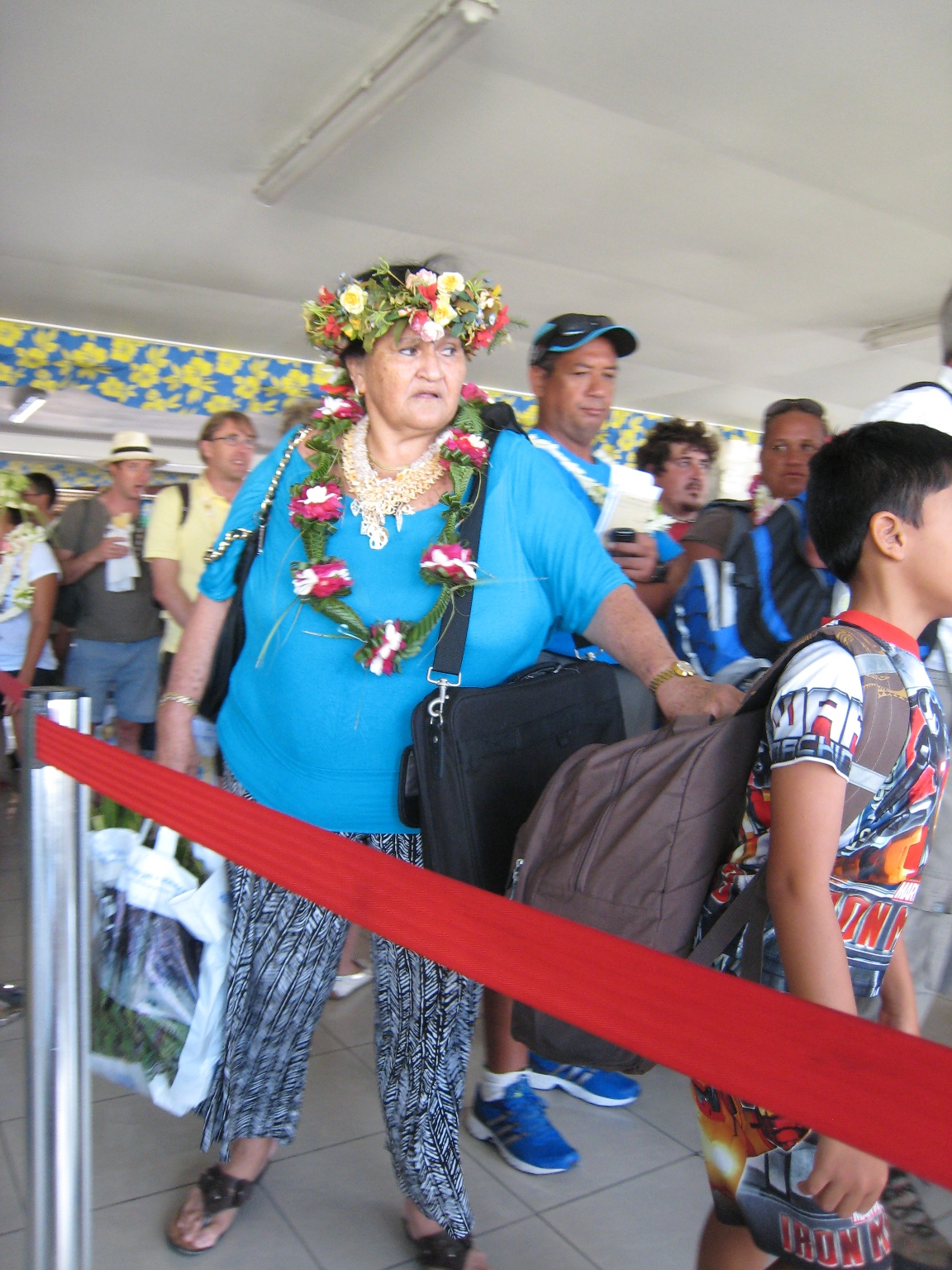 A l'aéroport, il règne une certaines effervescence, les familles accompagnent les leurs qu'ils ont couvert de fleurs pour l'occasion (au revoir ou bonjour ... c'est par les couronnes tressées et les colliers de fleurs que ça passe !)