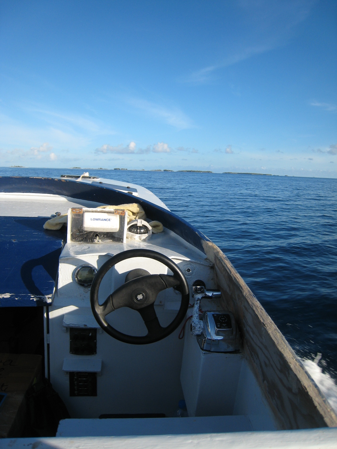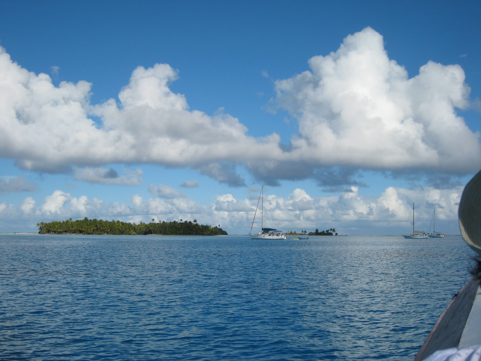 C'est en bateau que nous filons vers Fakarava Sud et heureusement il fait superbe ...
