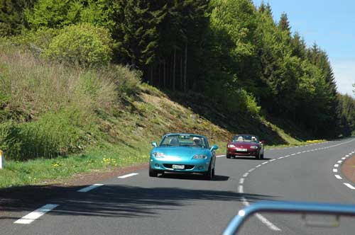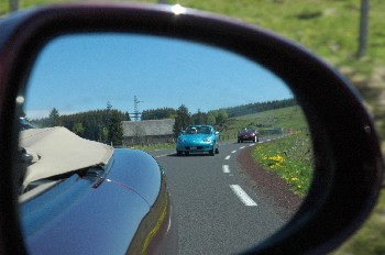 Bon on est en retard .. on a lavé nos titines qui après le rallye des pouraves sont un peu sales quand mm .. donc on part plus tard .. et on fait les Georges de la Rhue à notre rythme .. c'est à dire vite, très vite avec Nath et jipi (ici au volant de ma titine, il va me montrer ce que ma voiture a dans l'ventre ) C'est parti... avec trois voitures bien propres !