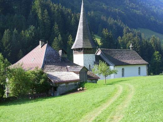 Et de l'autre côté de la route, une autre superbe église avec ses dépendances aux tuiles en bois!