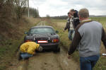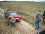 Sauvetage de la rouge ..... biennnnn bien embourbéeee elle !!!! et ce que je ne savais pas .... que je vois avec ces photos d'Eric .. (merci) c'est que c'est le sympathique copain sauveteur qui a mis le genoux en terre ... la Didier tu nous dois encore un coup !!!!!! mdrrrr